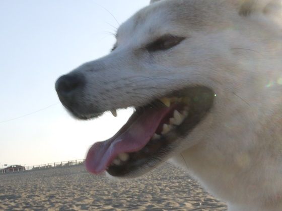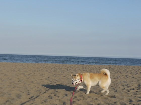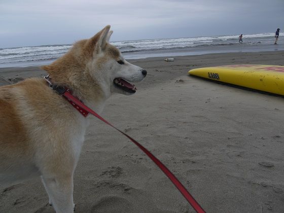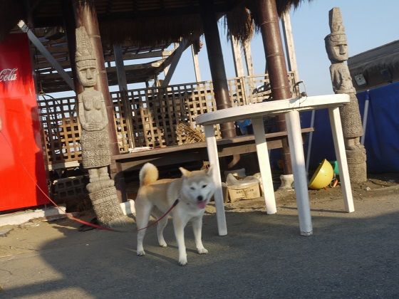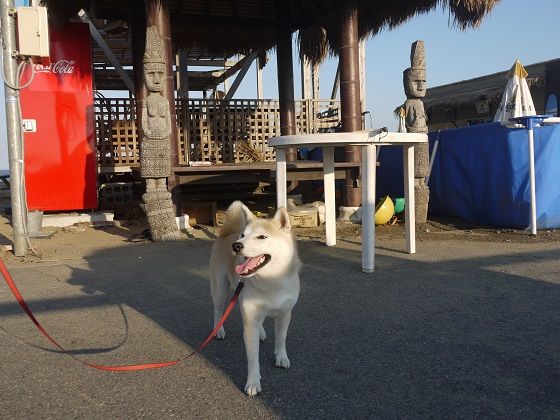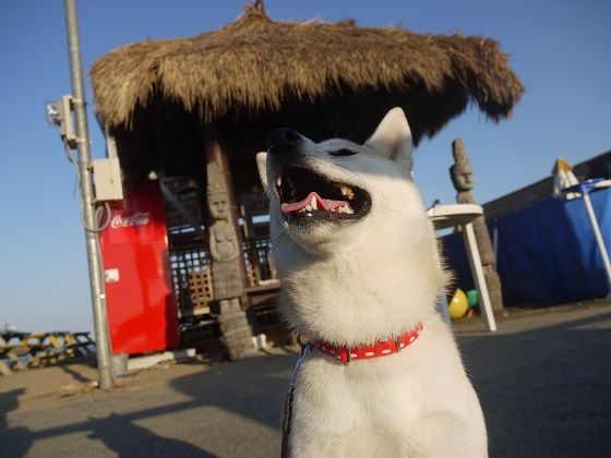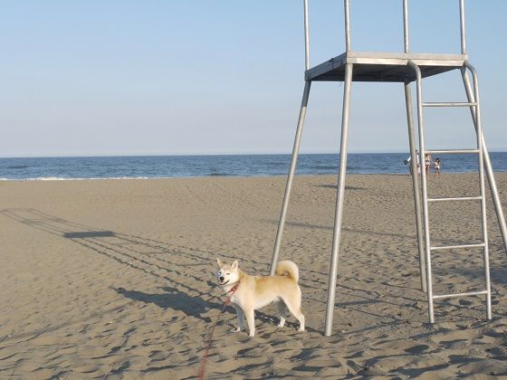 過ぎ行く夏を楽しまれている海水浴客のみなさんに「可愛い〜」って褒められて、満足気な柴犬さん ♥