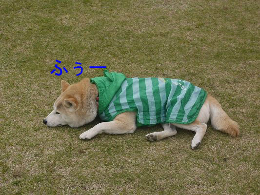 ようやく雨が止んだから、カッパ脱いで、お散歩に行こうよ ♪