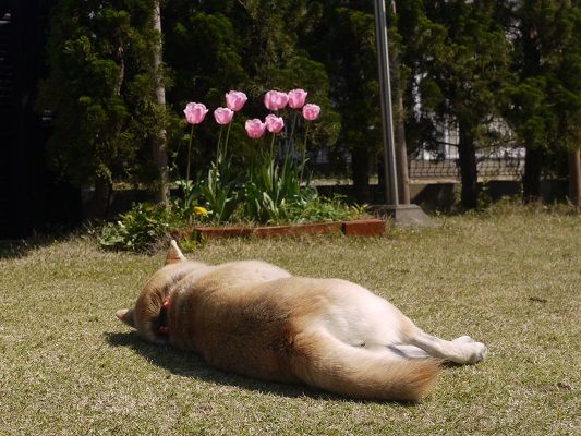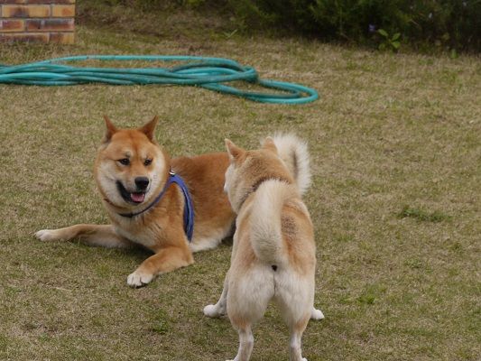 暖かくなって、柴犬さんもお庭で過ごす時間が、長くなってきました ♪