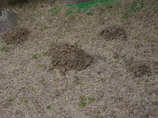 これ、モグラさんの土盛なのです。 毎朝、あちこちに現れるようになりました。