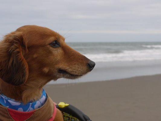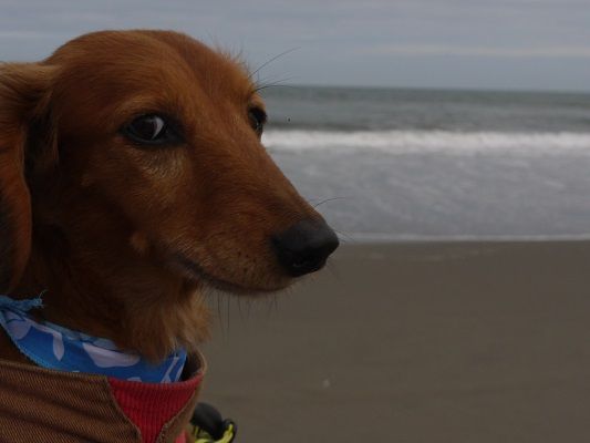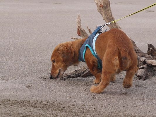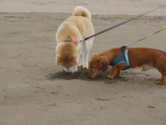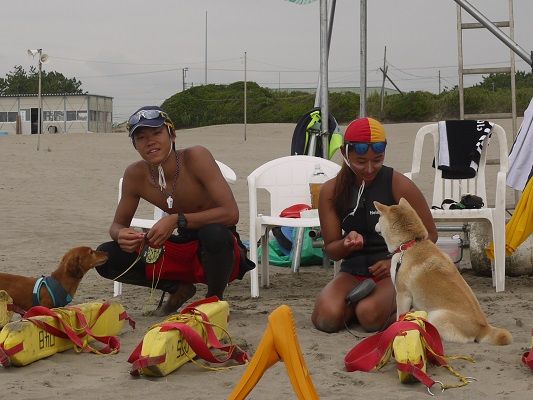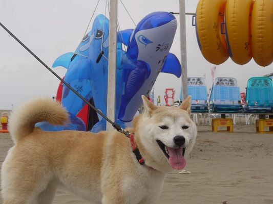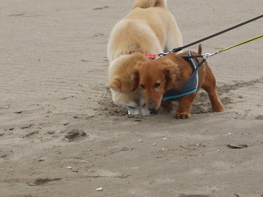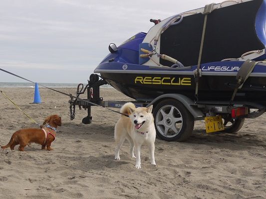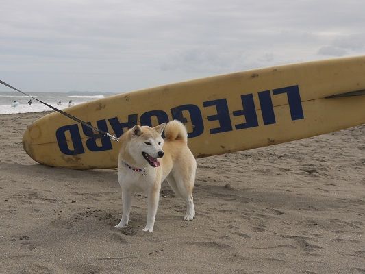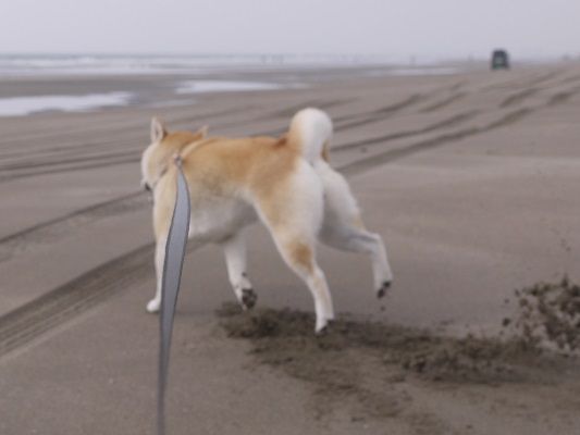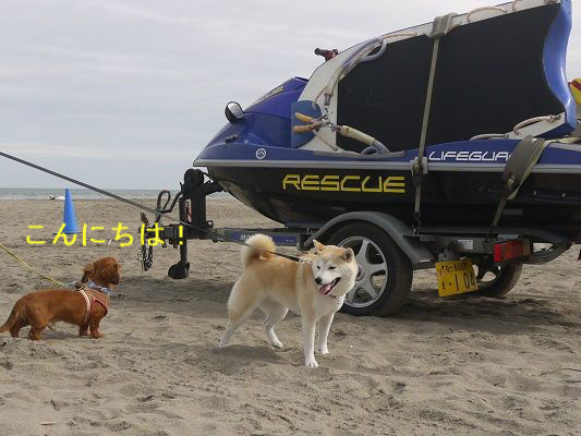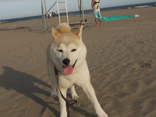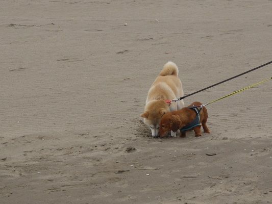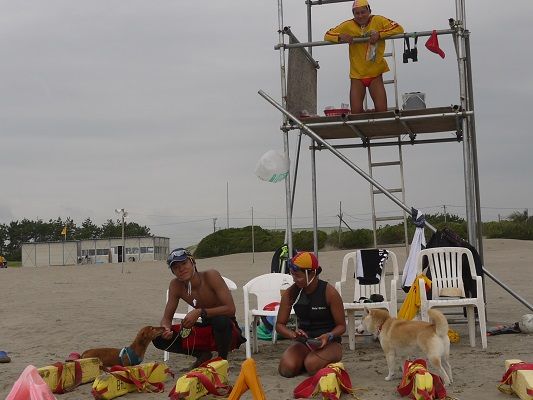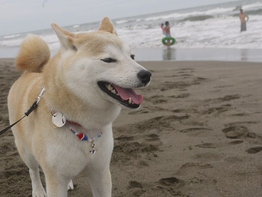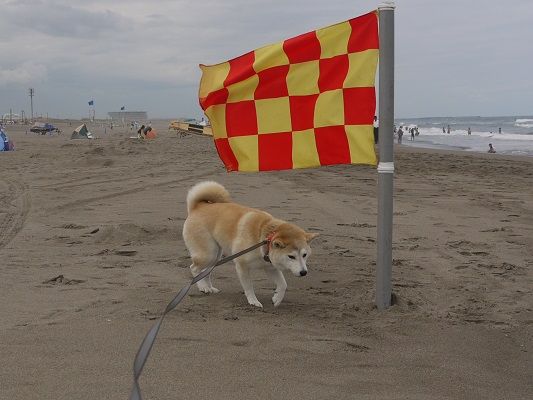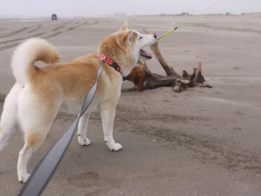 あいにくの曇り空だけれど、ワンちゃんにとっては、比較的に過ごしやすい午後の浜辺なのです。