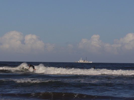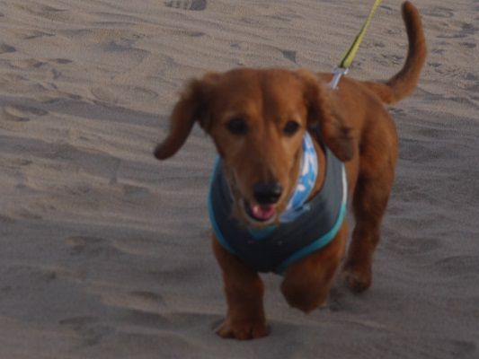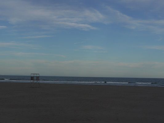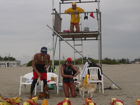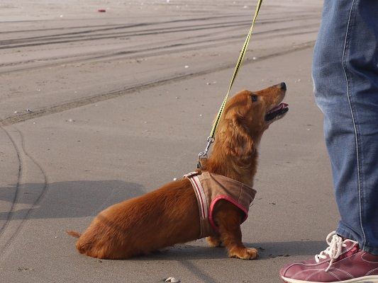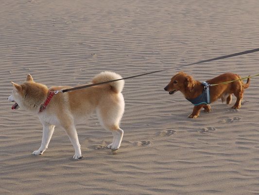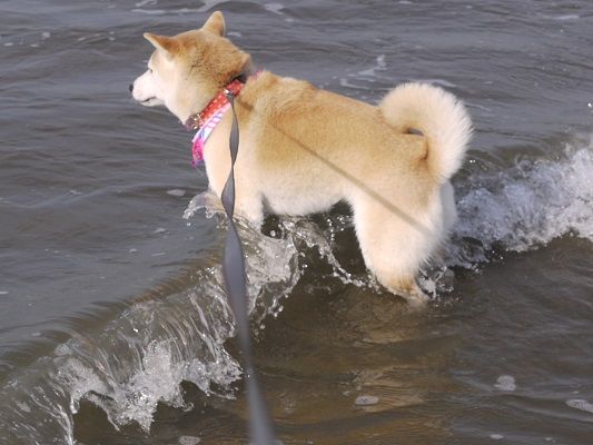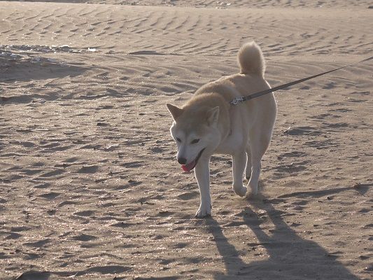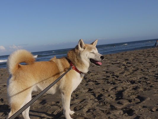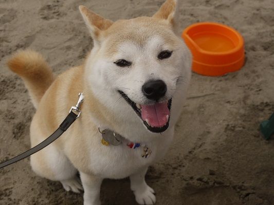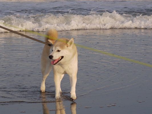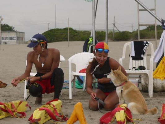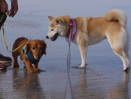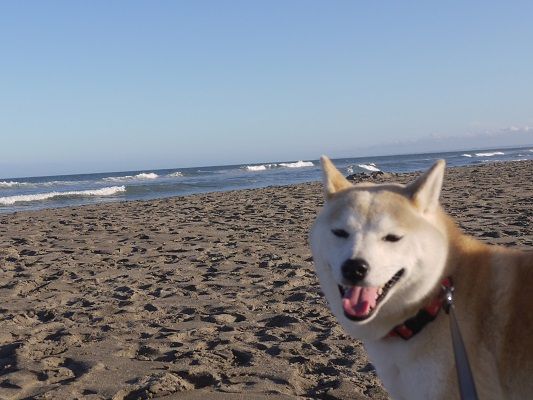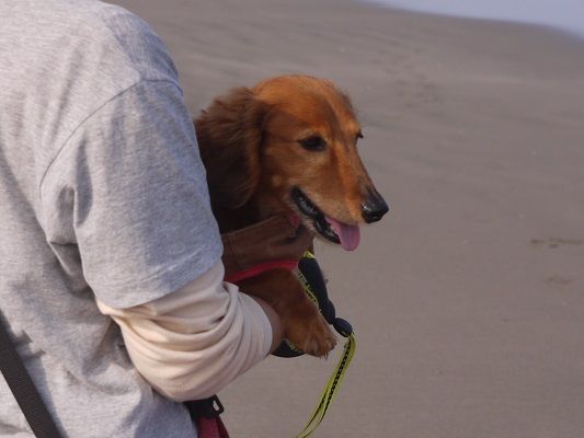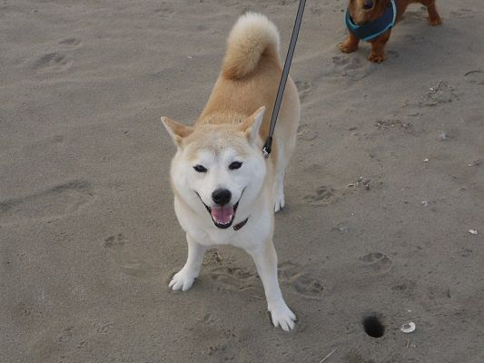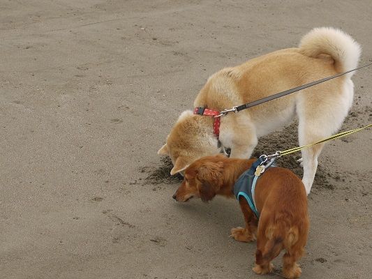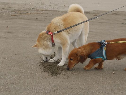 あいにくの曇り空だけれど、ワンちゃんにとっては、比較的に過ごしやすい午後の浜辺なのです。
