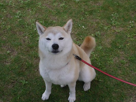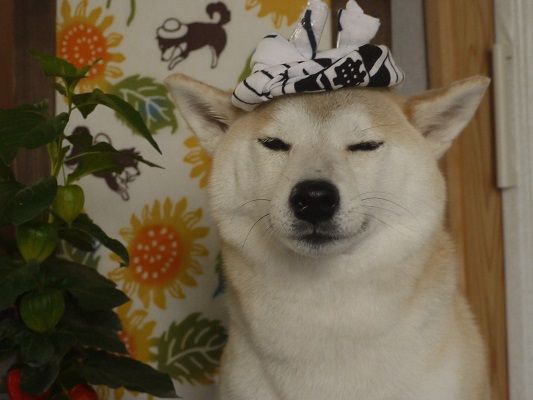 偉いぞ〜! 首に巻いているのは、昨日、アレグリさんからいただいた可愛いスカーフです。