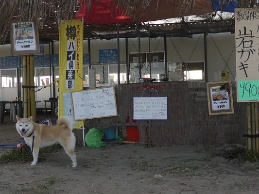 やって来たのは、片貝海水浴場。 こちらにも沢山の海の家が、ございます。