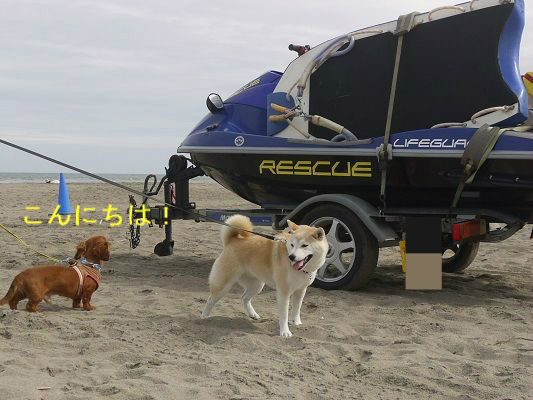 はっぴぃは、大きなジェットスキーに興味津々。 欲しいの??? かぁちゃんに頼んでごらん ♪