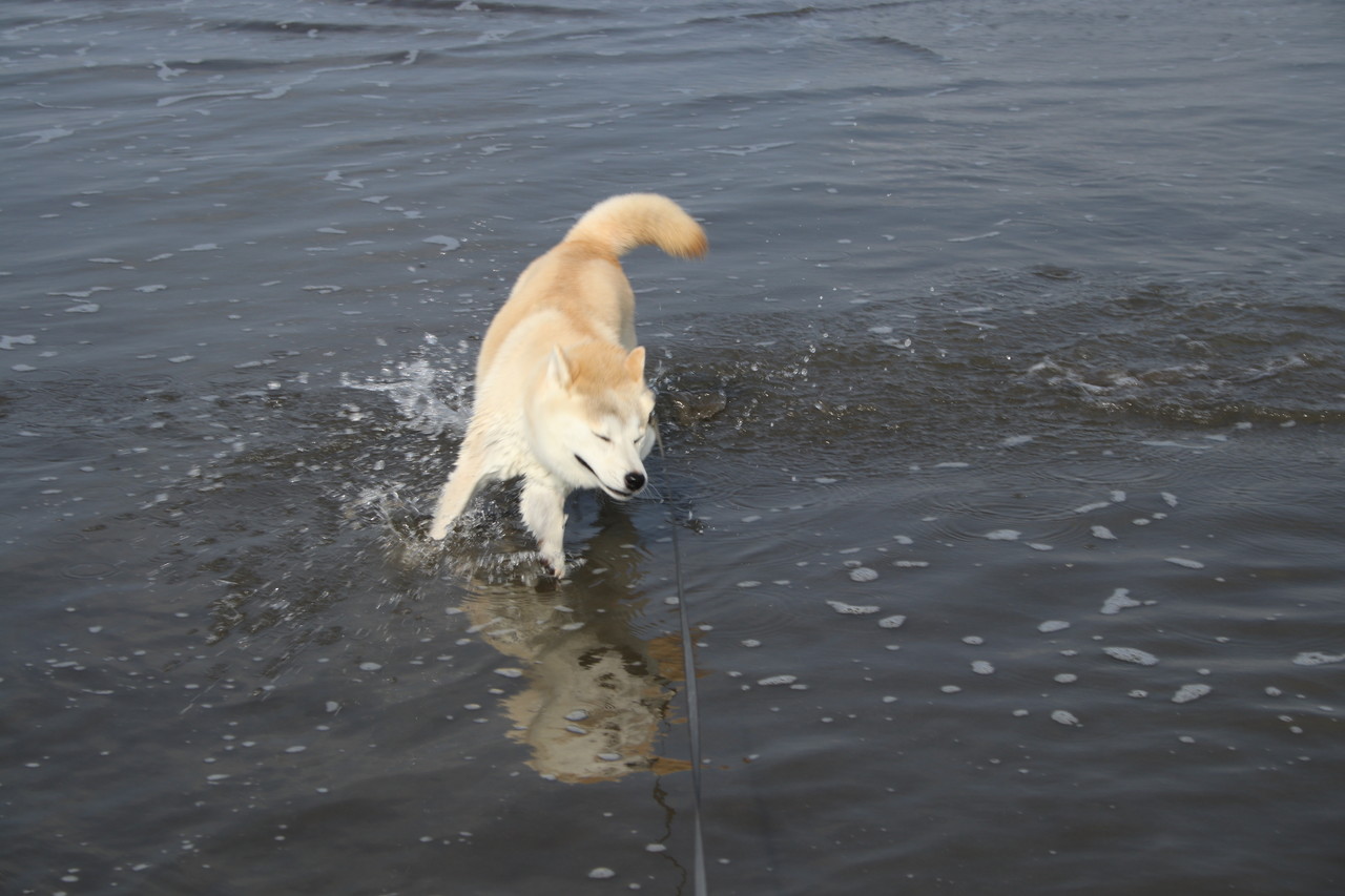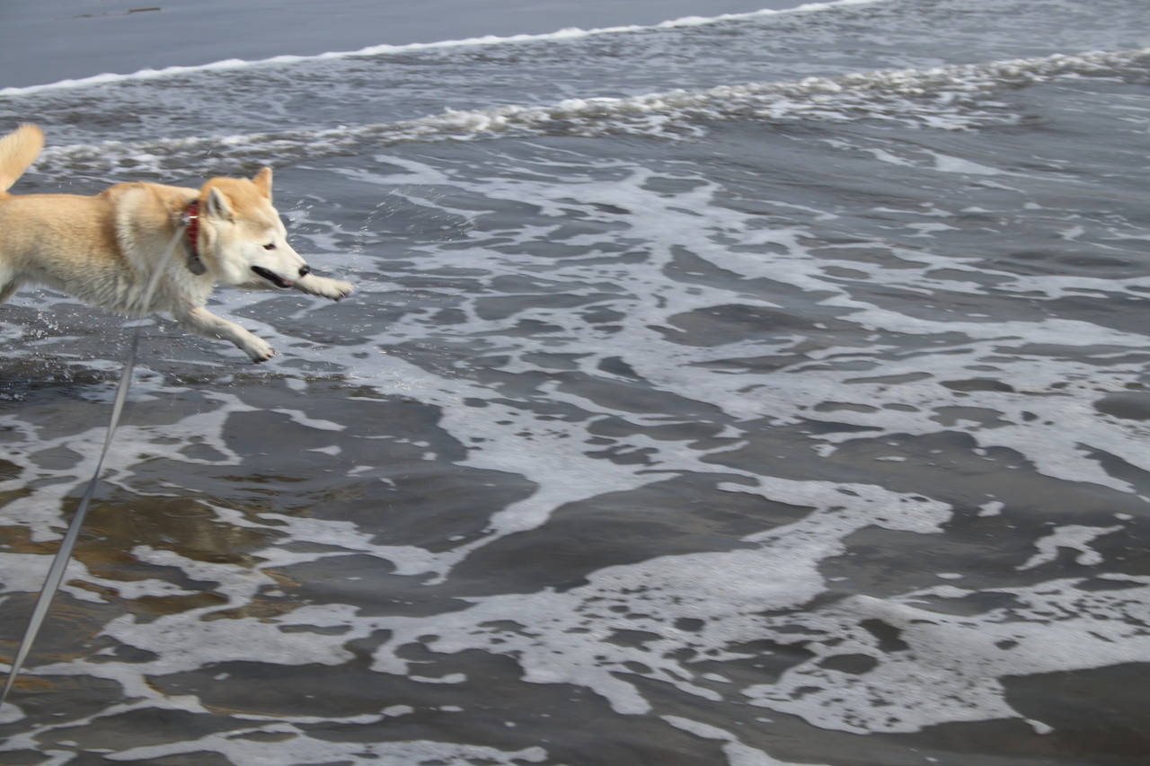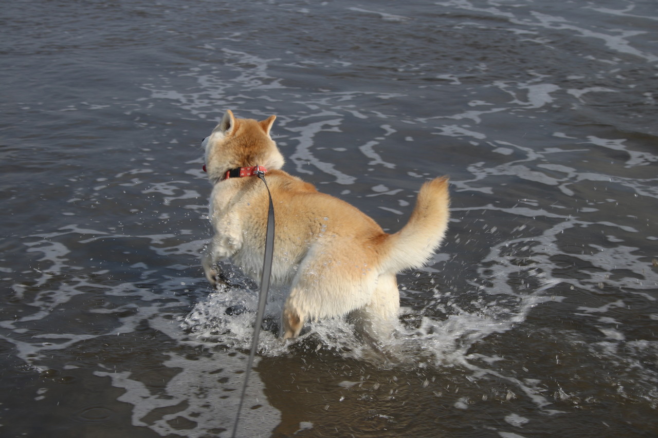 海の大好きな柴犬さんは、ジャバジャバ入って行きますよ〜 ♪