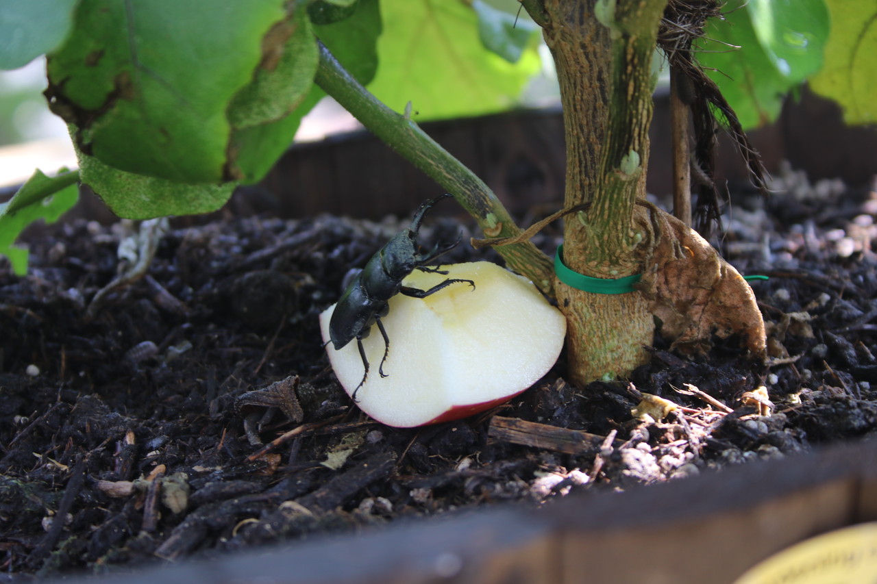 という訳で、我が家のお庭に連れて来てあげました。