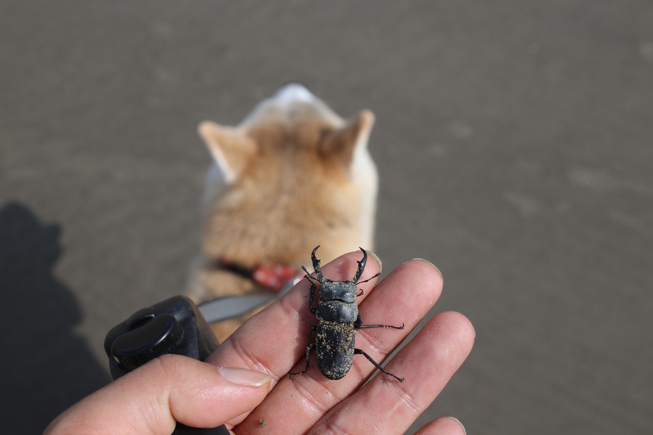 砂に埋もれて、もがいていたのは、クワガタムシ君。