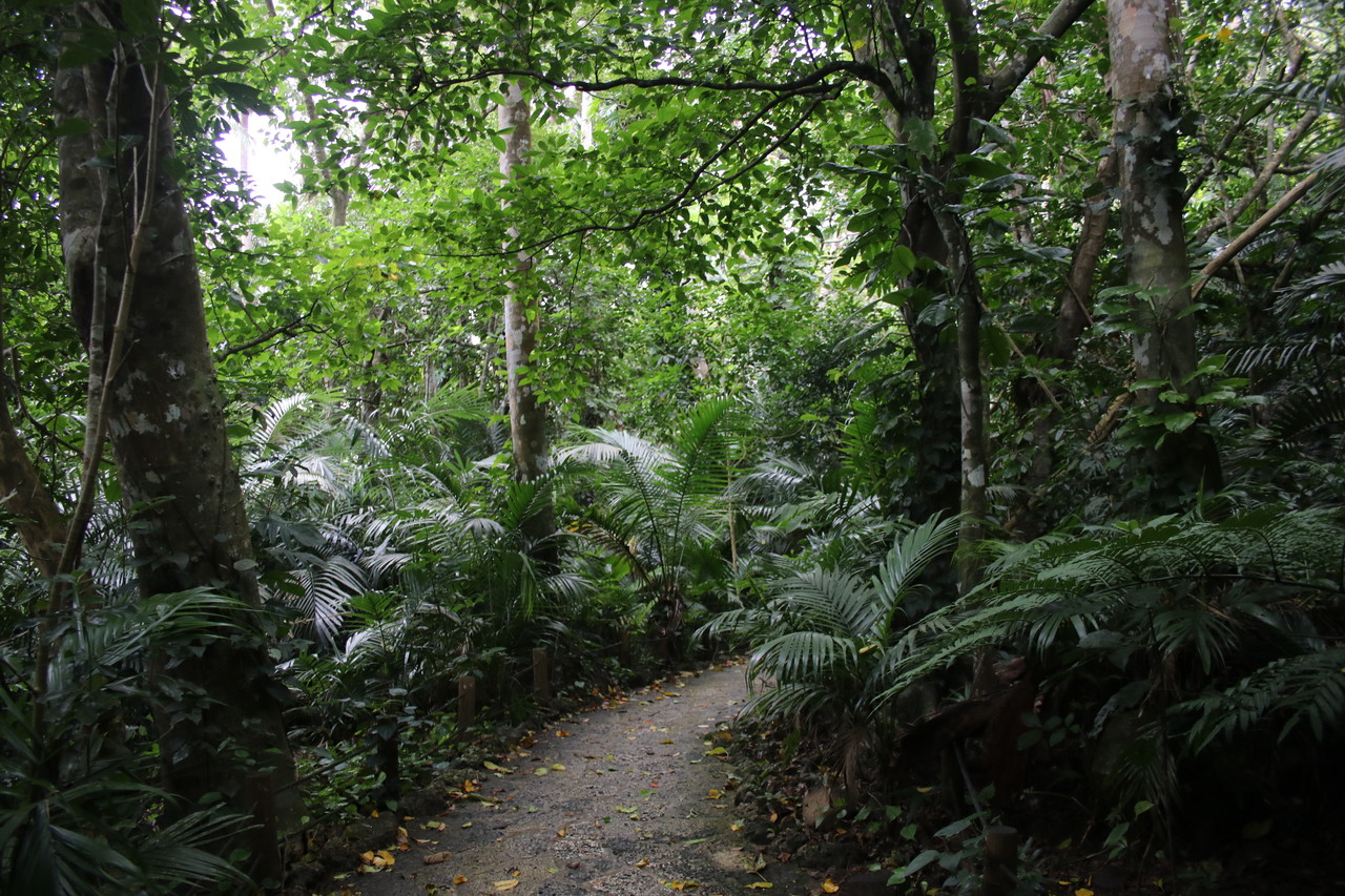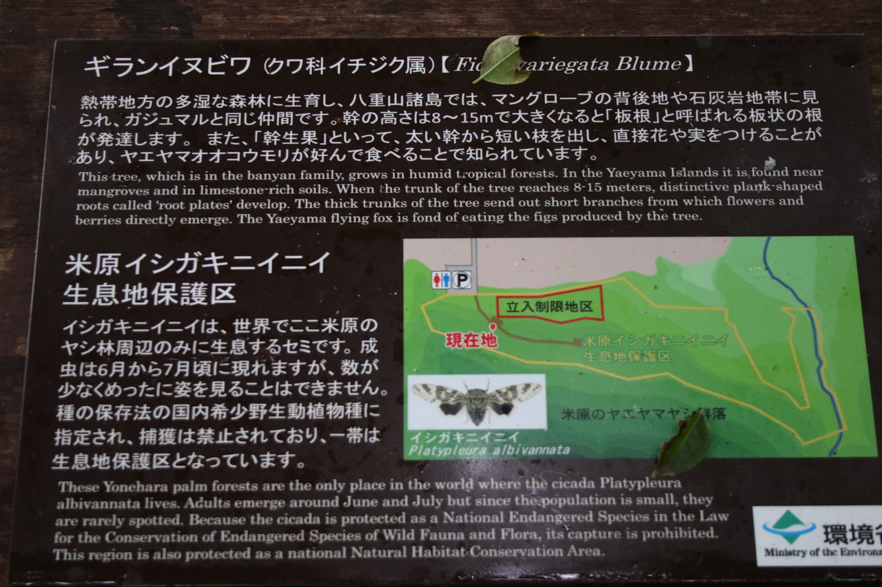 こちらでは、イシガキニイニイという、このヤシ林周辺のみに生息するセミがいるそうですよ〜。