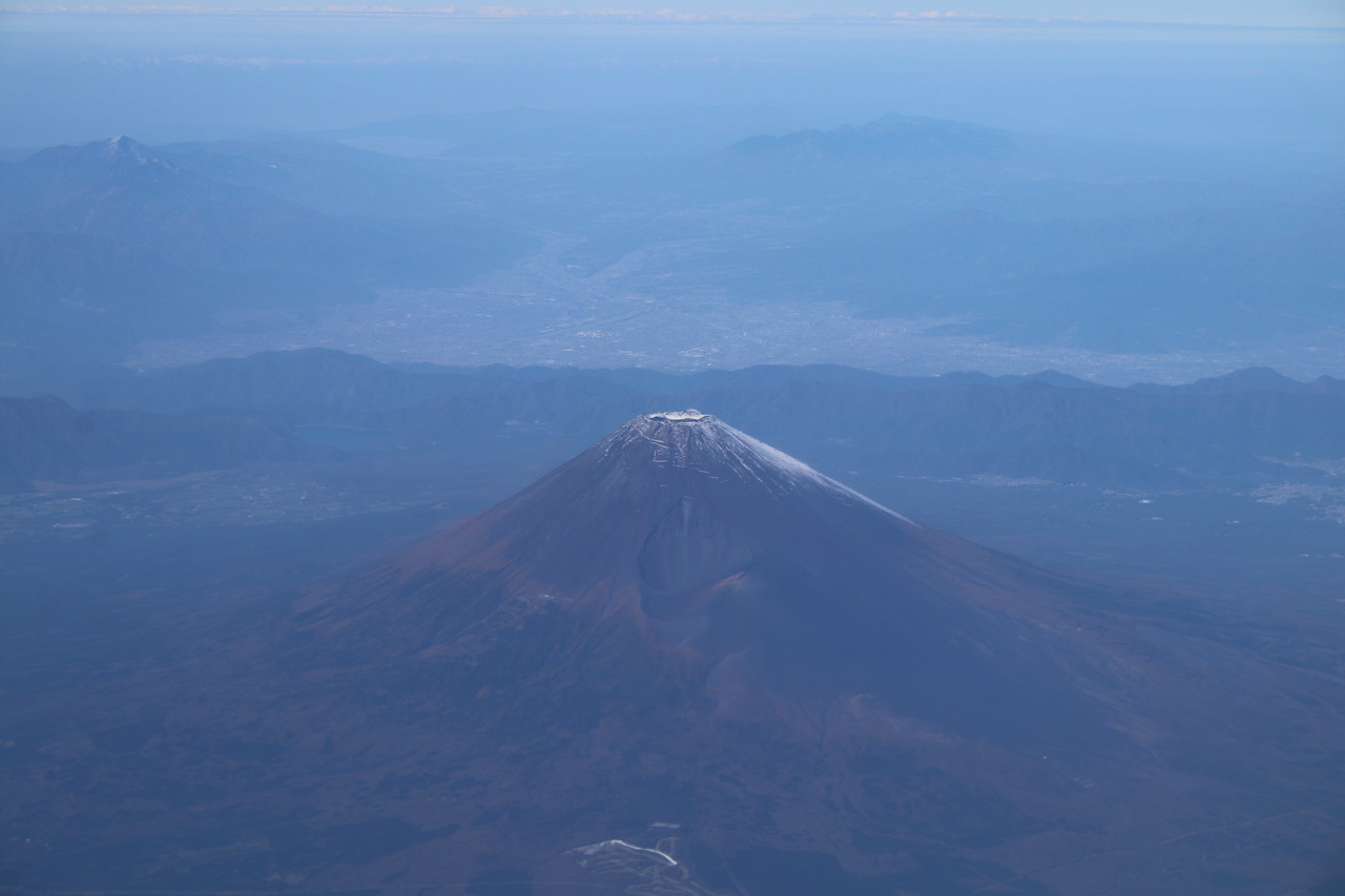 空から見えたのは、富士山。 うっすらと雪化粧していました。