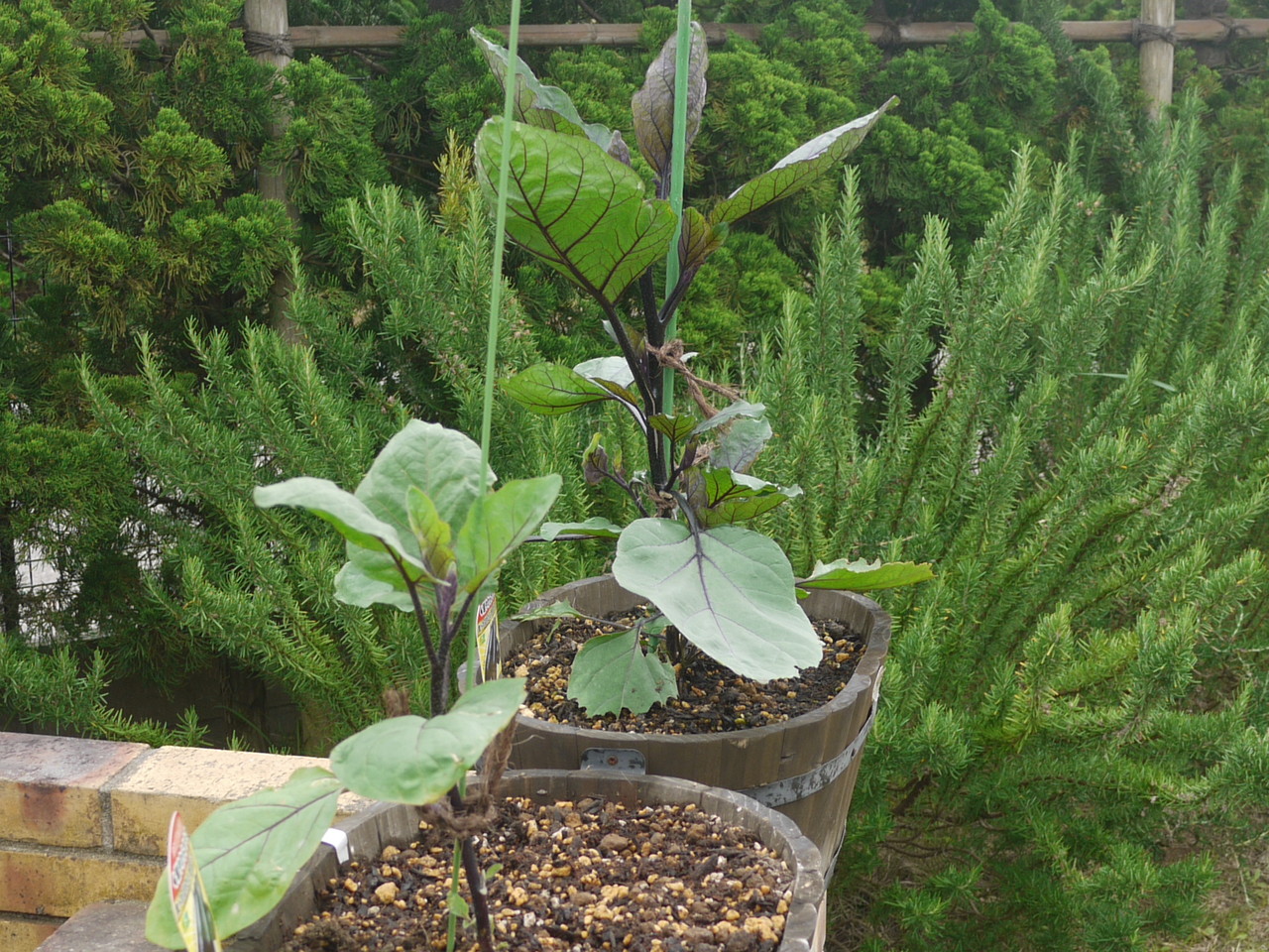 まずは、茄子。 一株増やしましたぞ! 先に育て始めた方は、茎が随分と太くなっています。