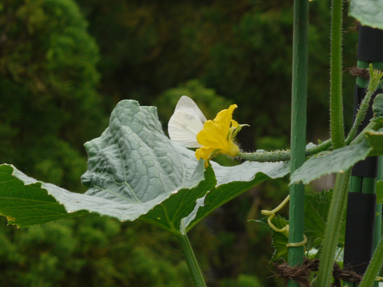 本日は、モンシロチョウが、やって来ていますよ〜 ♪ これで、受粉は完了かしら?