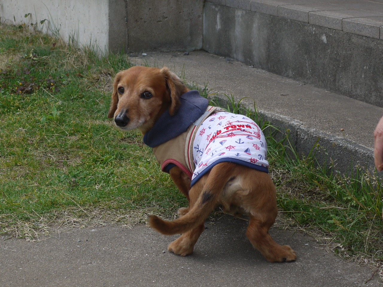 お散歩中は、短いアンヨを一生懸命に動かして、マリンお姉ちゃんを追いかけます。