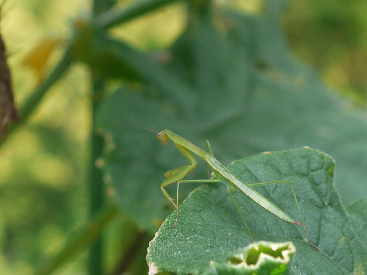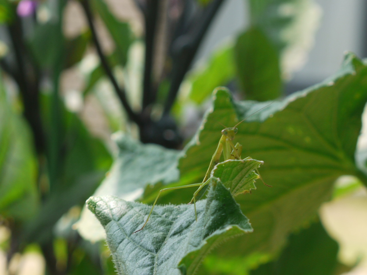 カマキリ君は、随分と大きくなりました! 胡瓜を食べているのでしょうか???