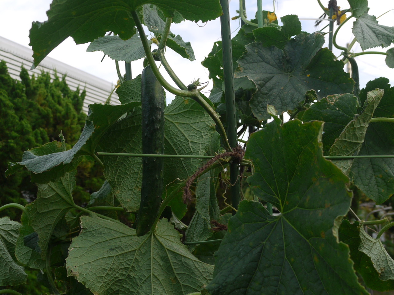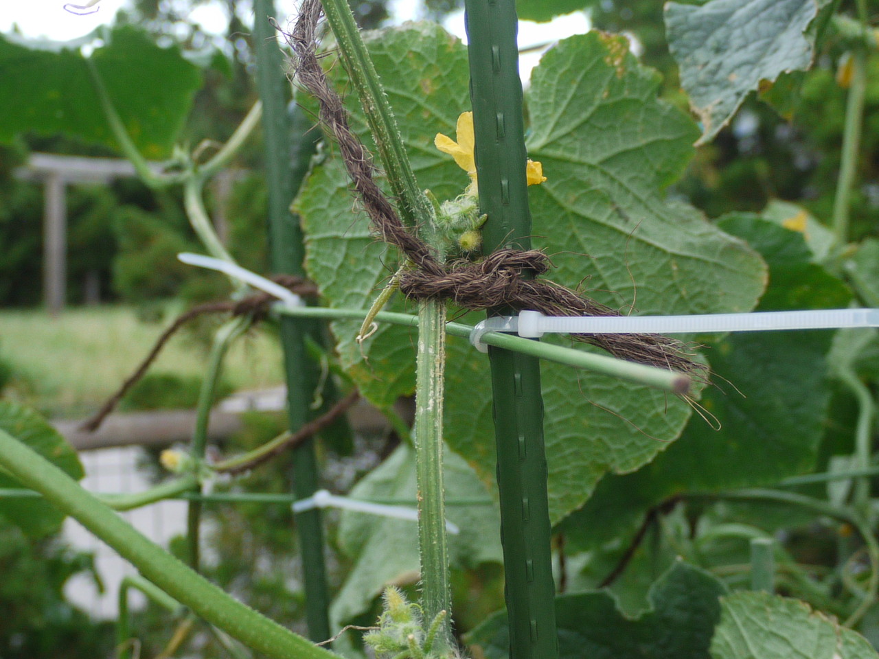 こちらは、胡瓜。 あちこちの茎が、折れかかっています。。。