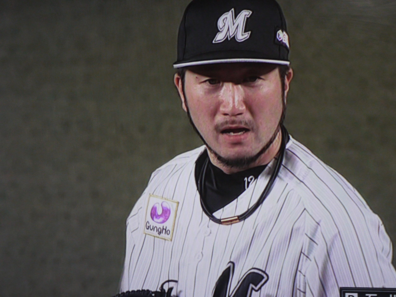 マリーンズのエース、石川投手が、ビシッと楽天打線を抑え込みました ♪