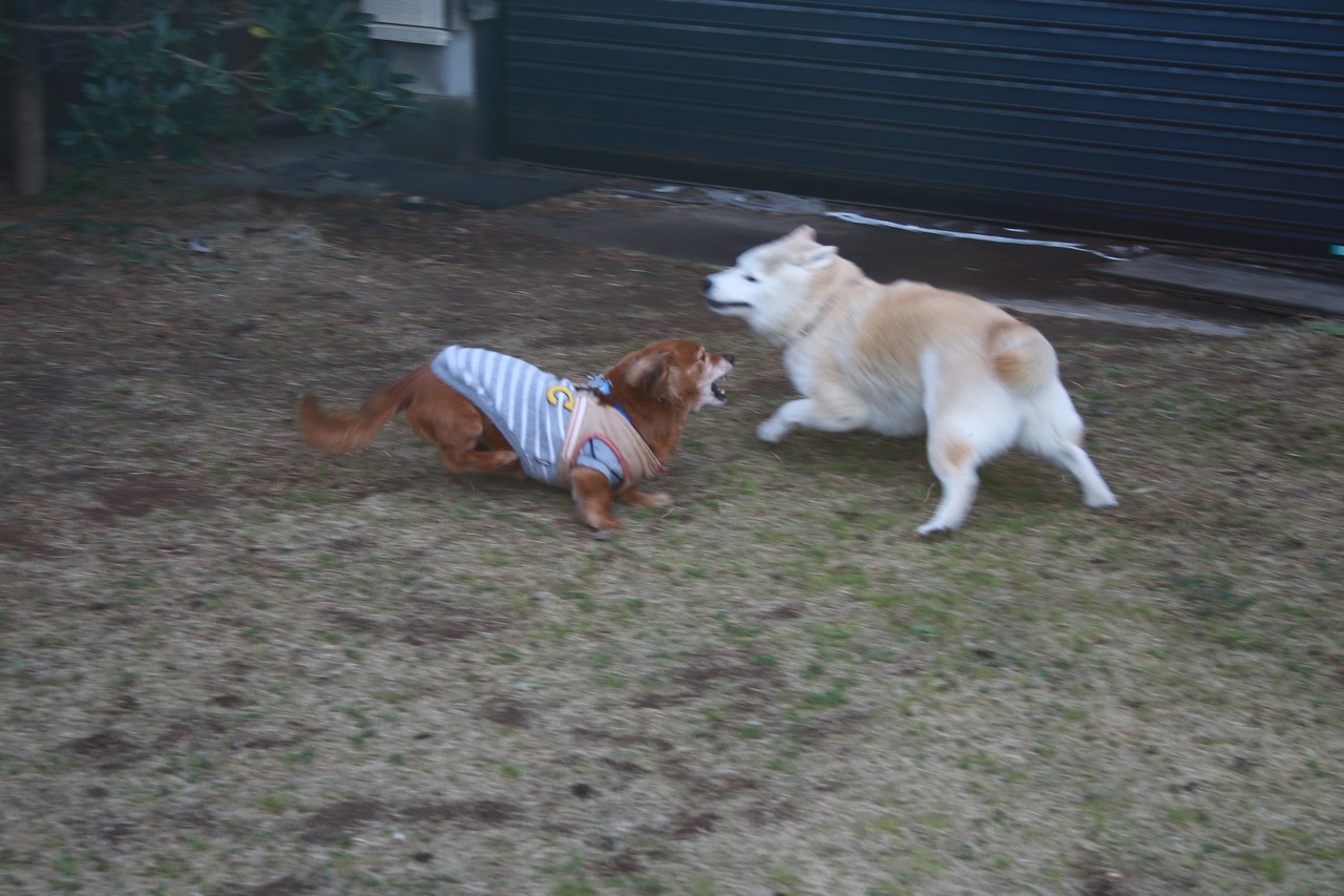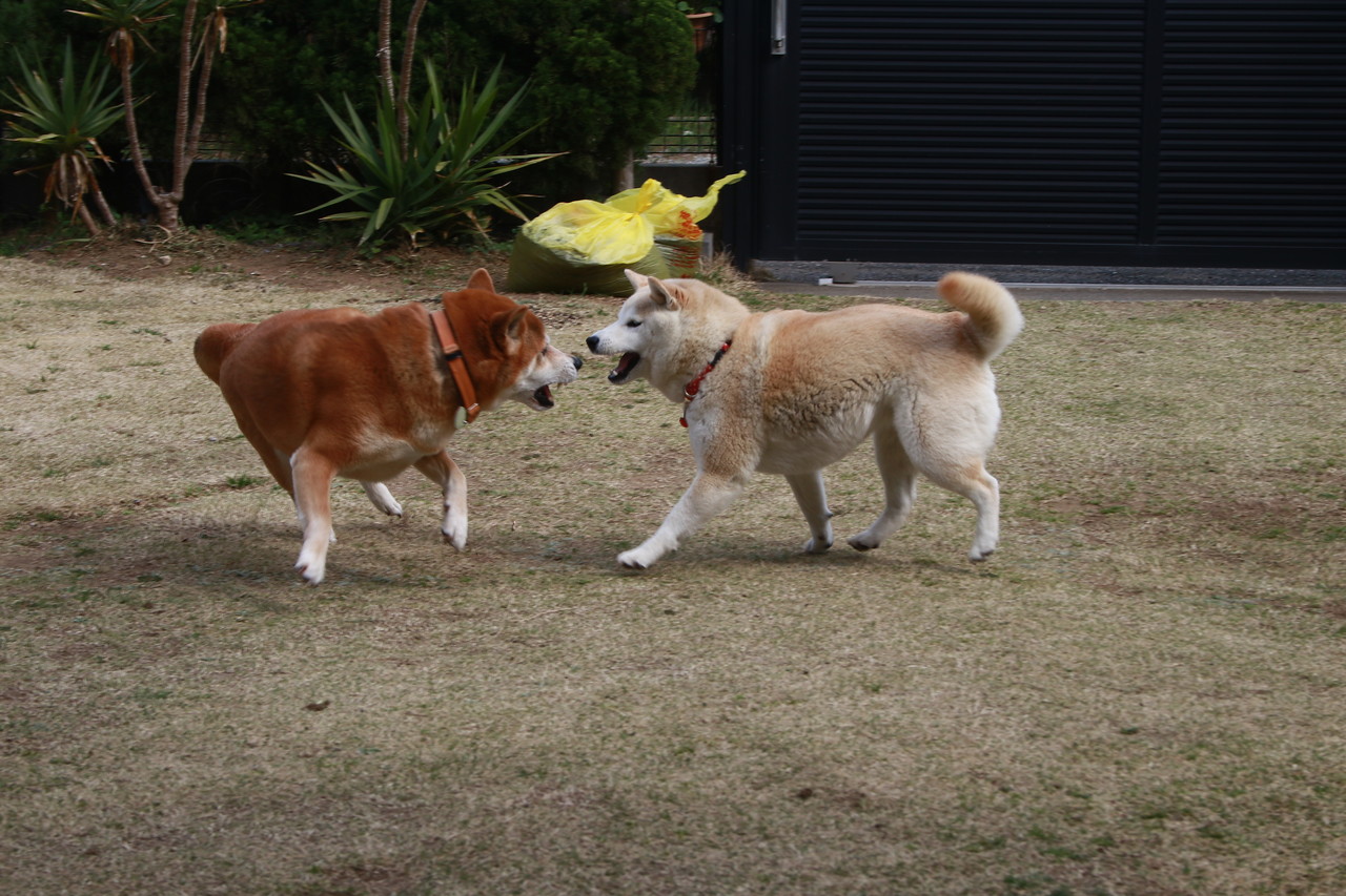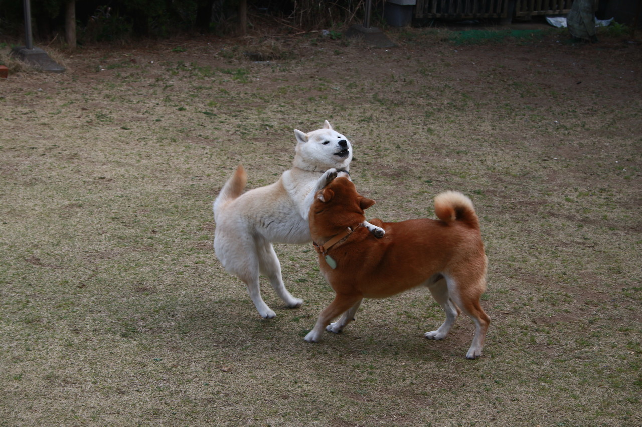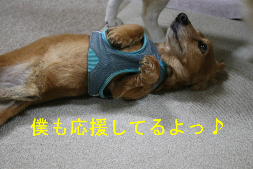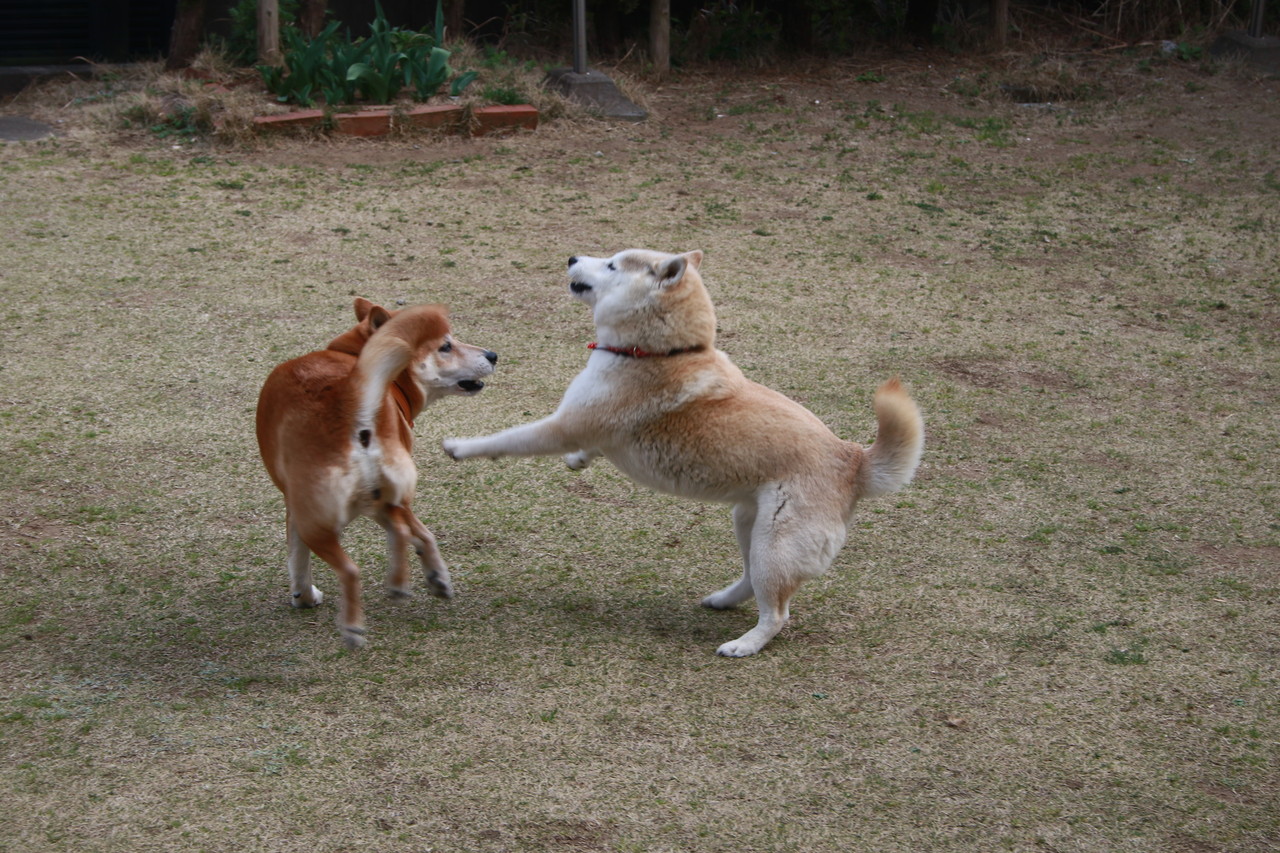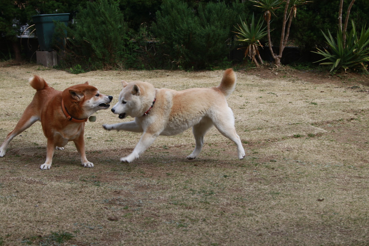 仲良く(?)遊ぶ、我が家のワンに、応援よろしくお願いいたします。