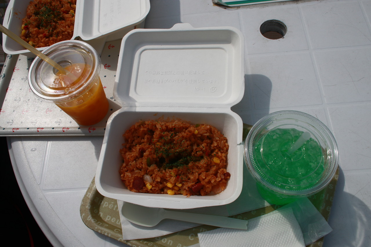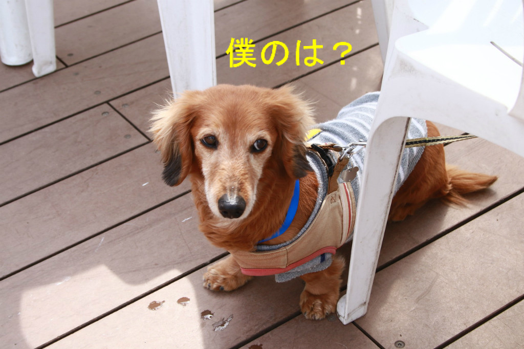 お昼ご飯は、ウッドデッキで、マリンとはっぴぃ君と一緒にいただきます。