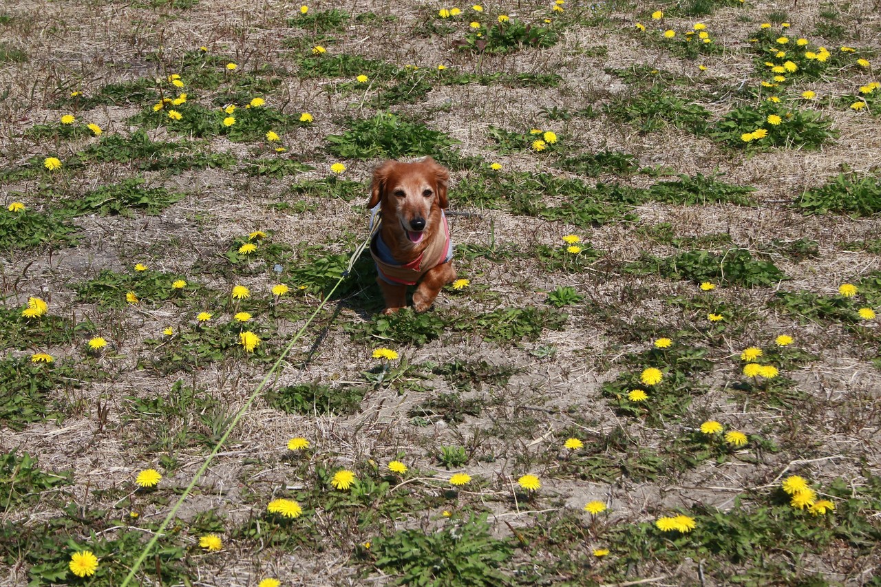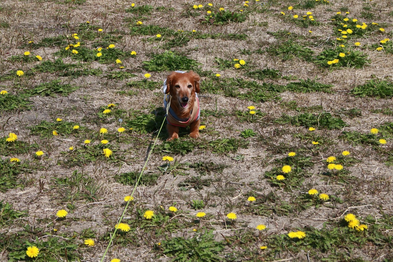 はっぴぃ君もタンポポ畑で、ご機嫌デス 💛