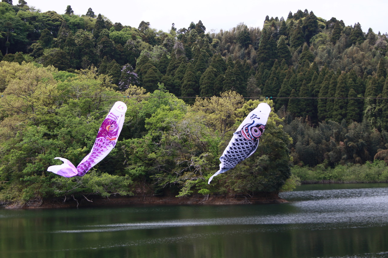 こちらでは、5月6日まで、子供達の健やかな成長を願って、約60匹の鯉のぼりが掲揚されていますよ〜。