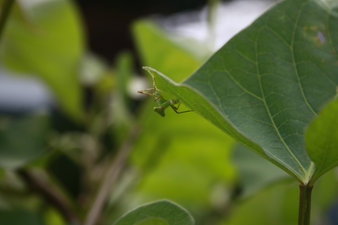 はっぴぃ君の大好きなお芋しゃんを守るのは、カマキリ1号ちゃん。 よろしく頼みます。