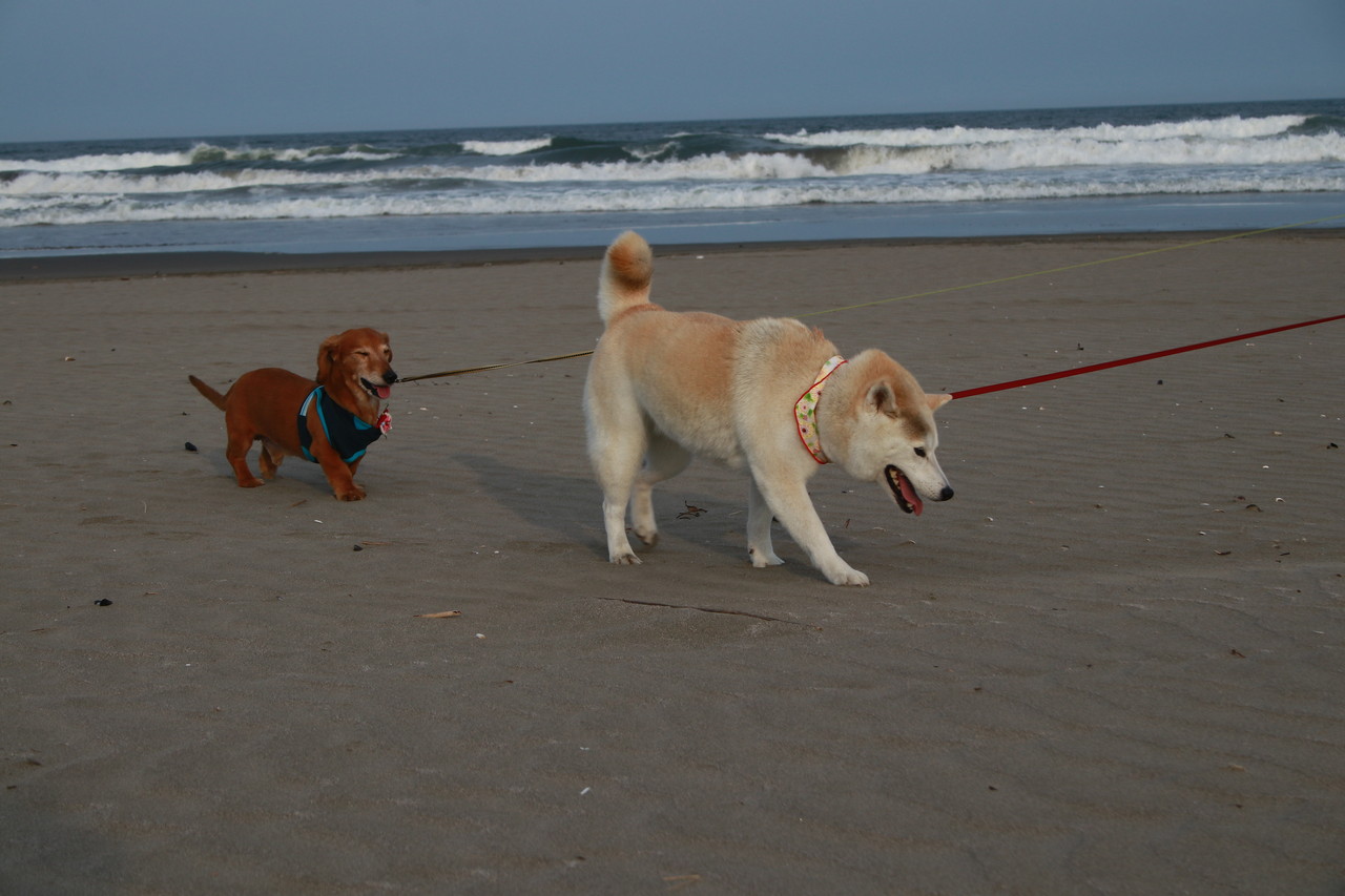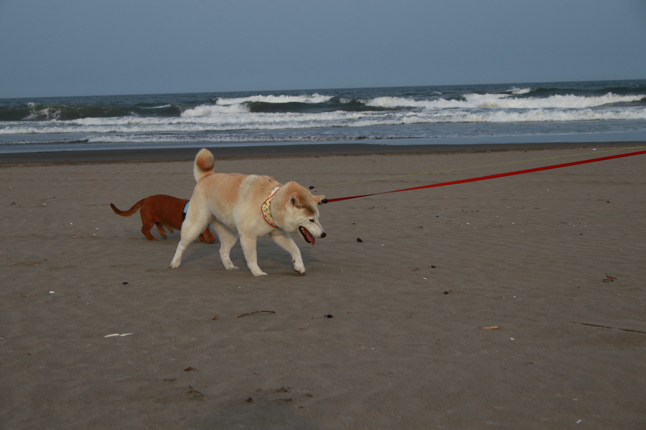 九十九里浜は、とっても蒸し暑いかったので、夕方のお散歩は、涼しくなってから 🎵