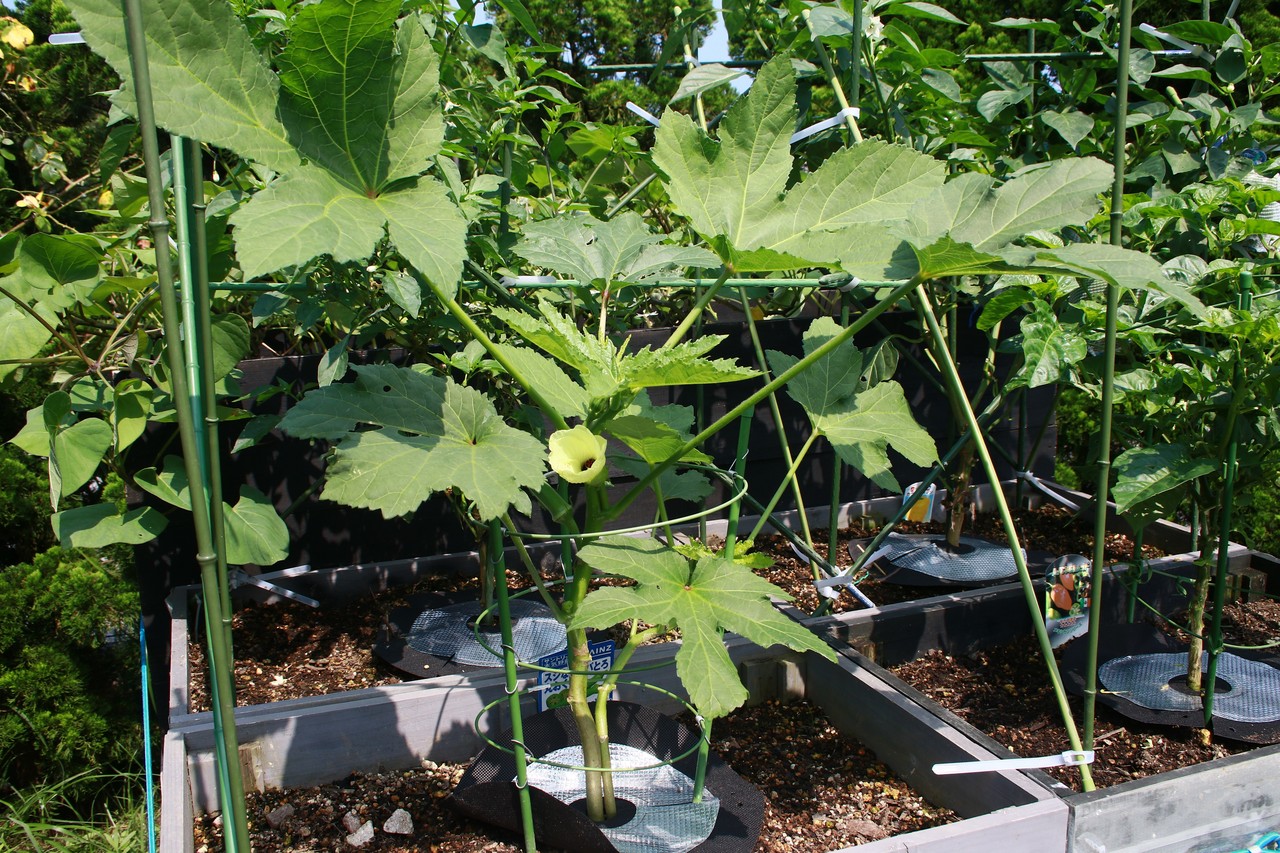 どひゃあー! 中々大きくならなかったオクラもでっかくなっていました。
