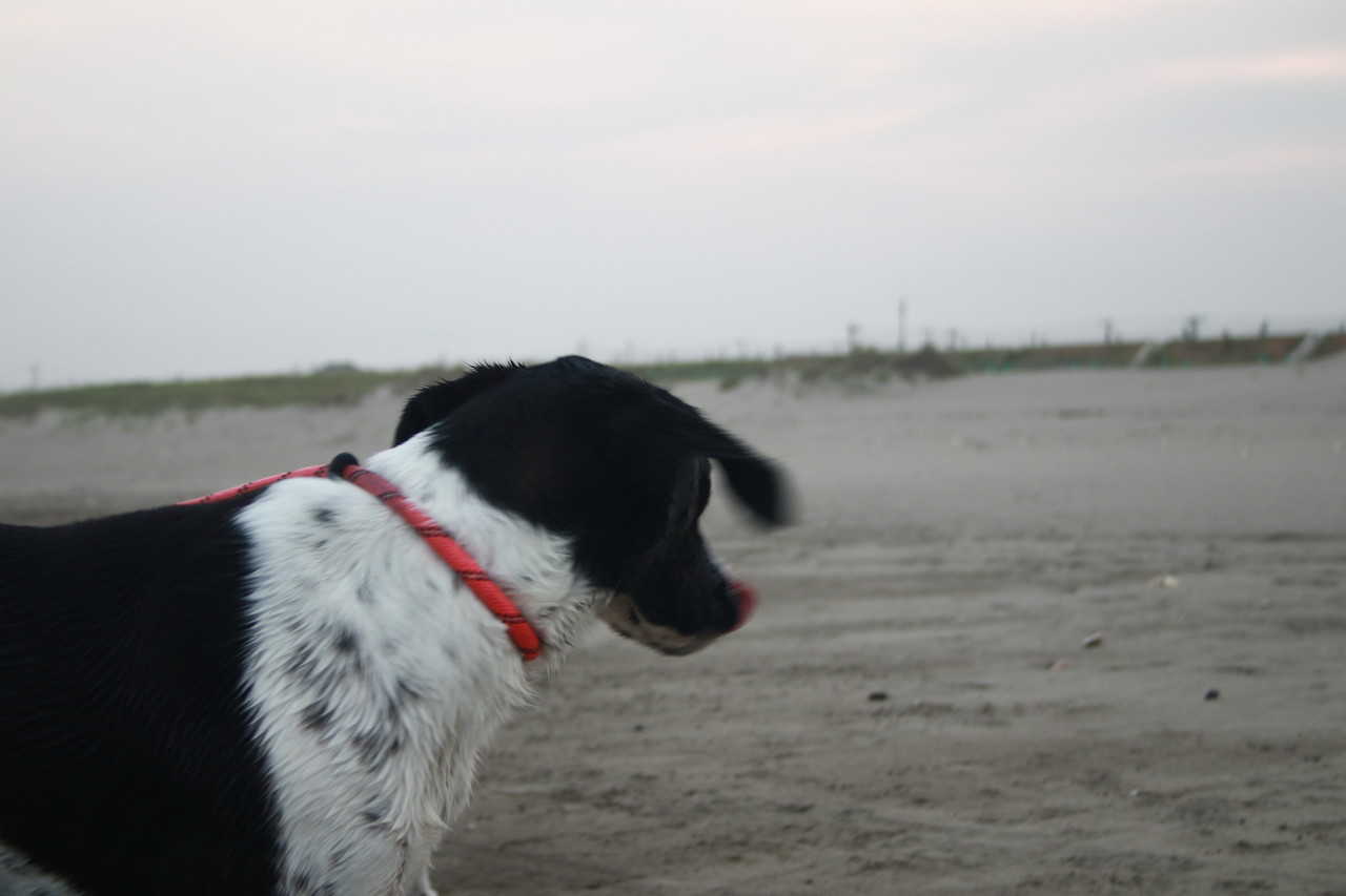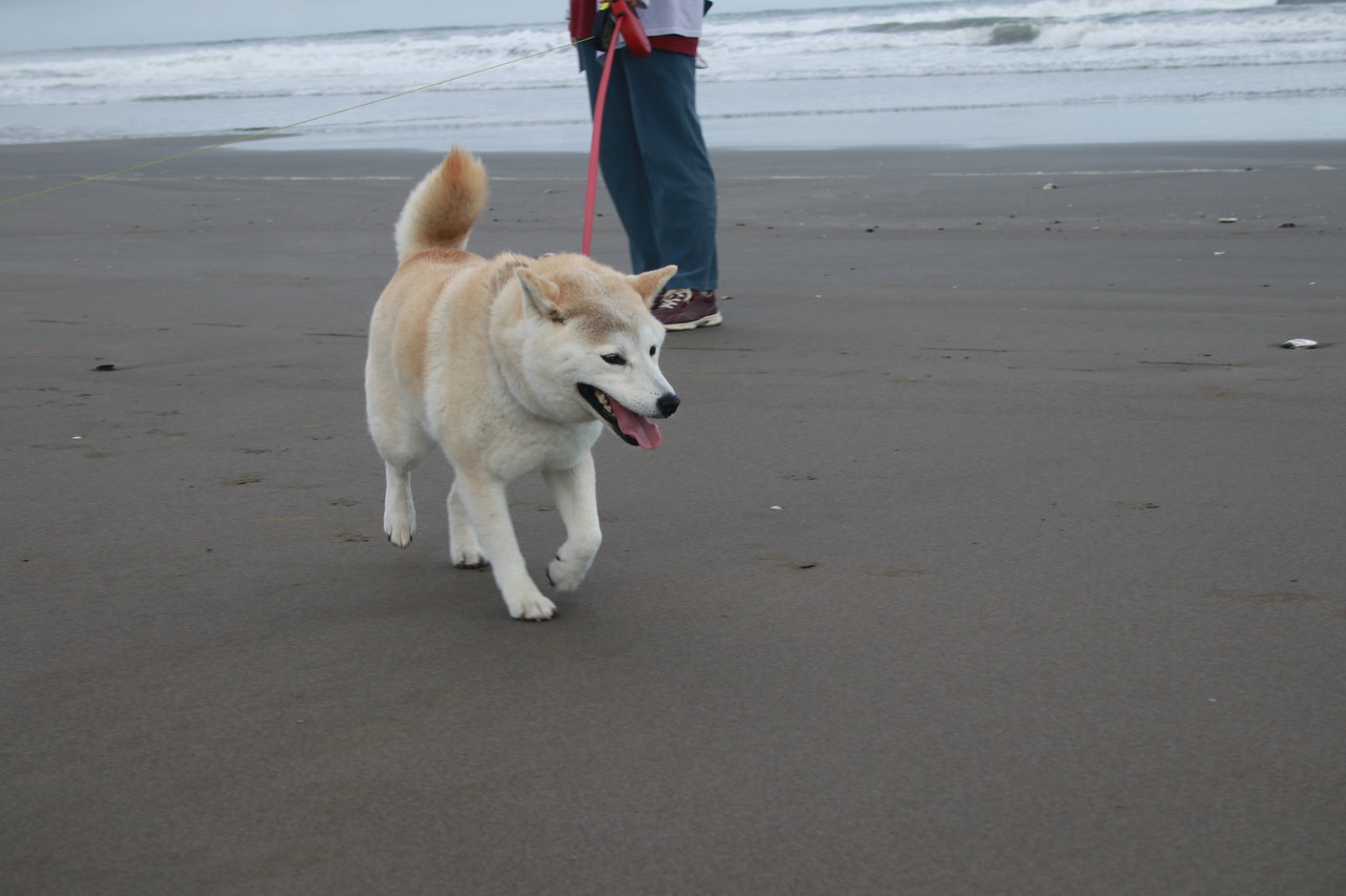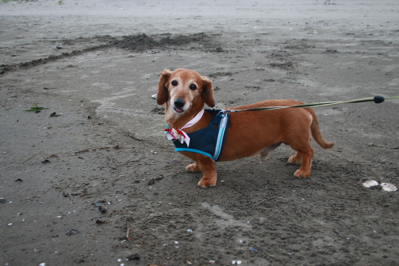 海遊びで、ビショビショの九十九里浜の元気一番、ルゥちゃんと
