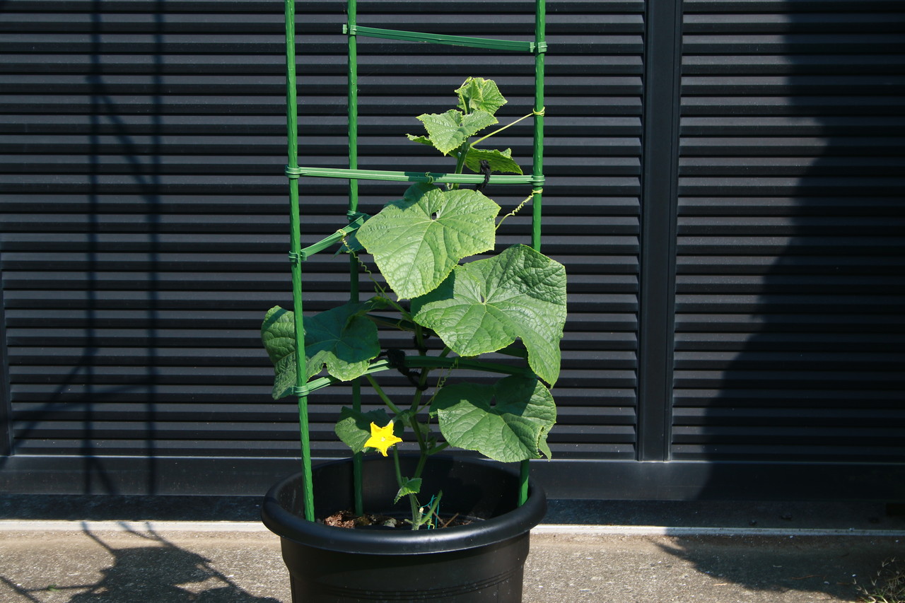 わぁーい! 摘芯したキュウリの先っぽを試しに育て始めたら、こんなに大きくなっていましたよ〜。