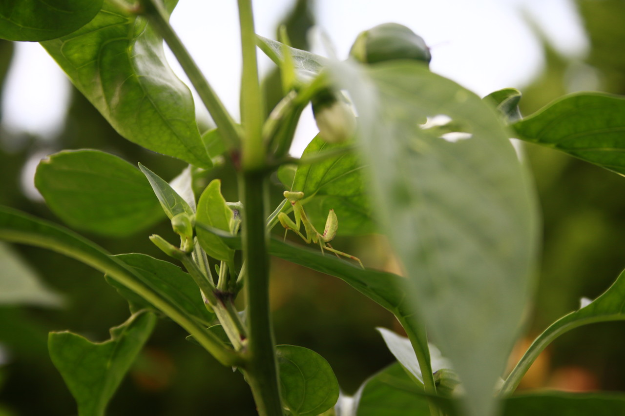 私の好きな茄子の警備は、カマキリ2号さん。 無農薬野菜作りの強力な助っ人さんなのです。