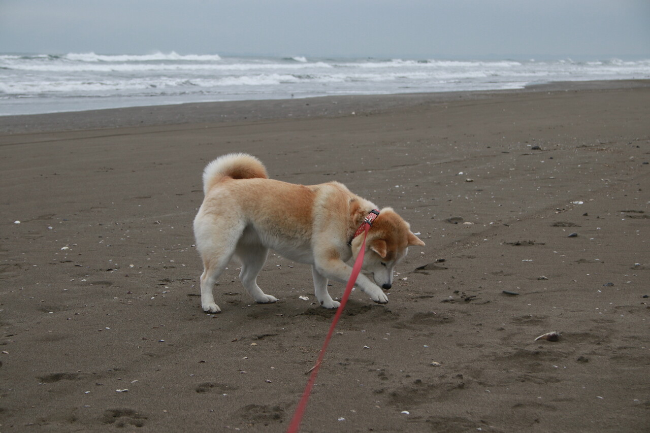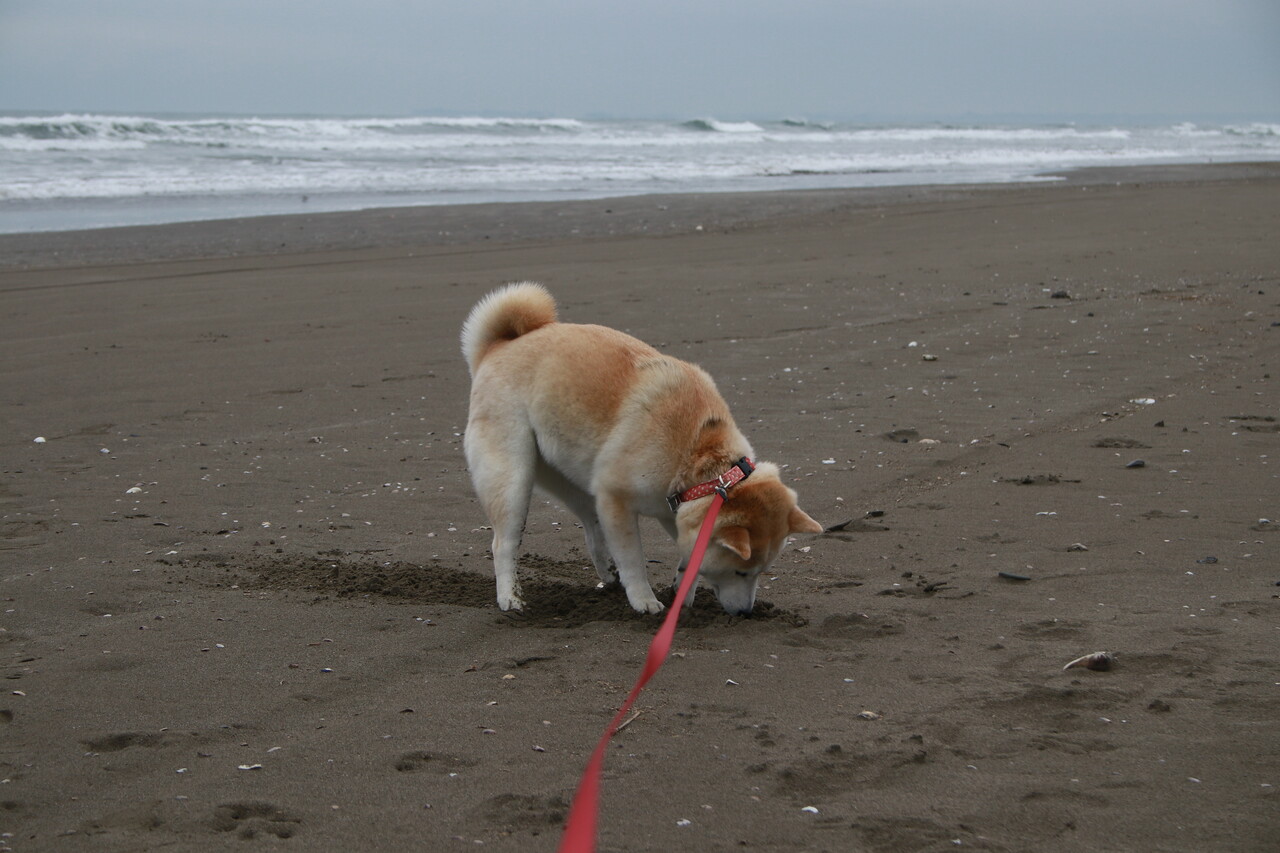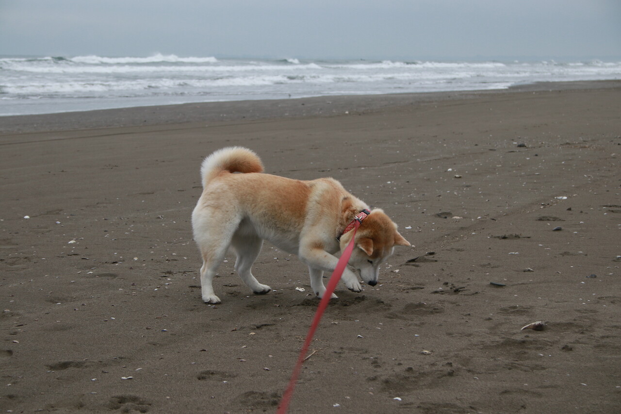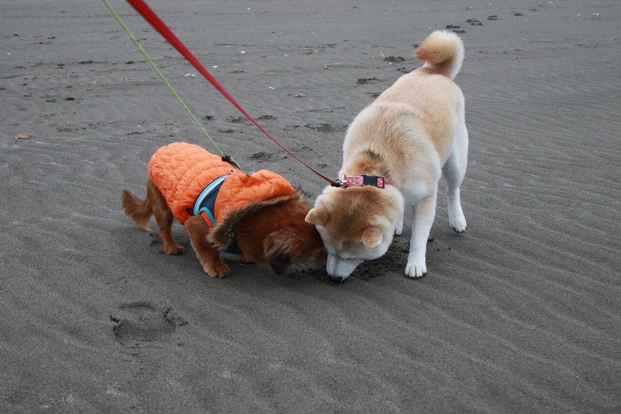 雨上がりの砂浜の香りは、格別。 仲良くチェックしています。