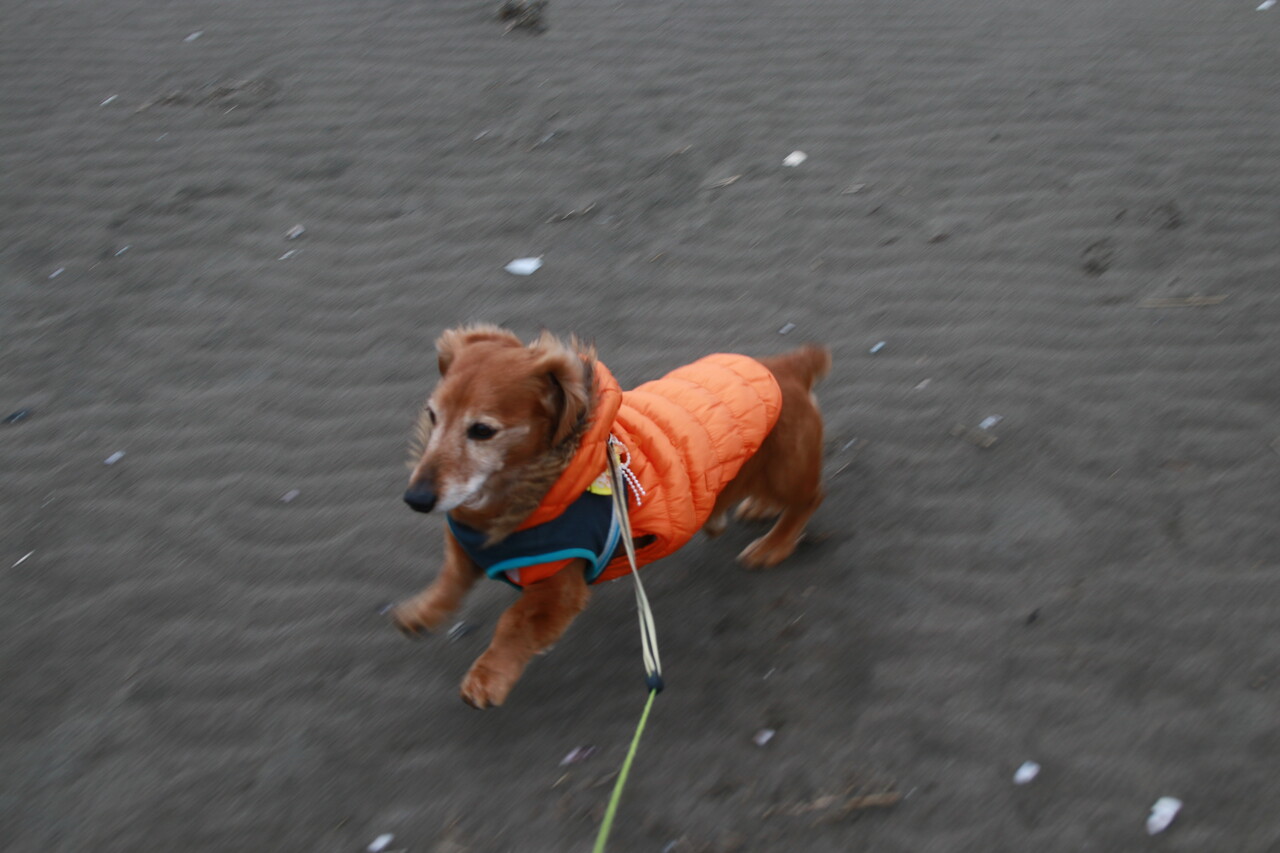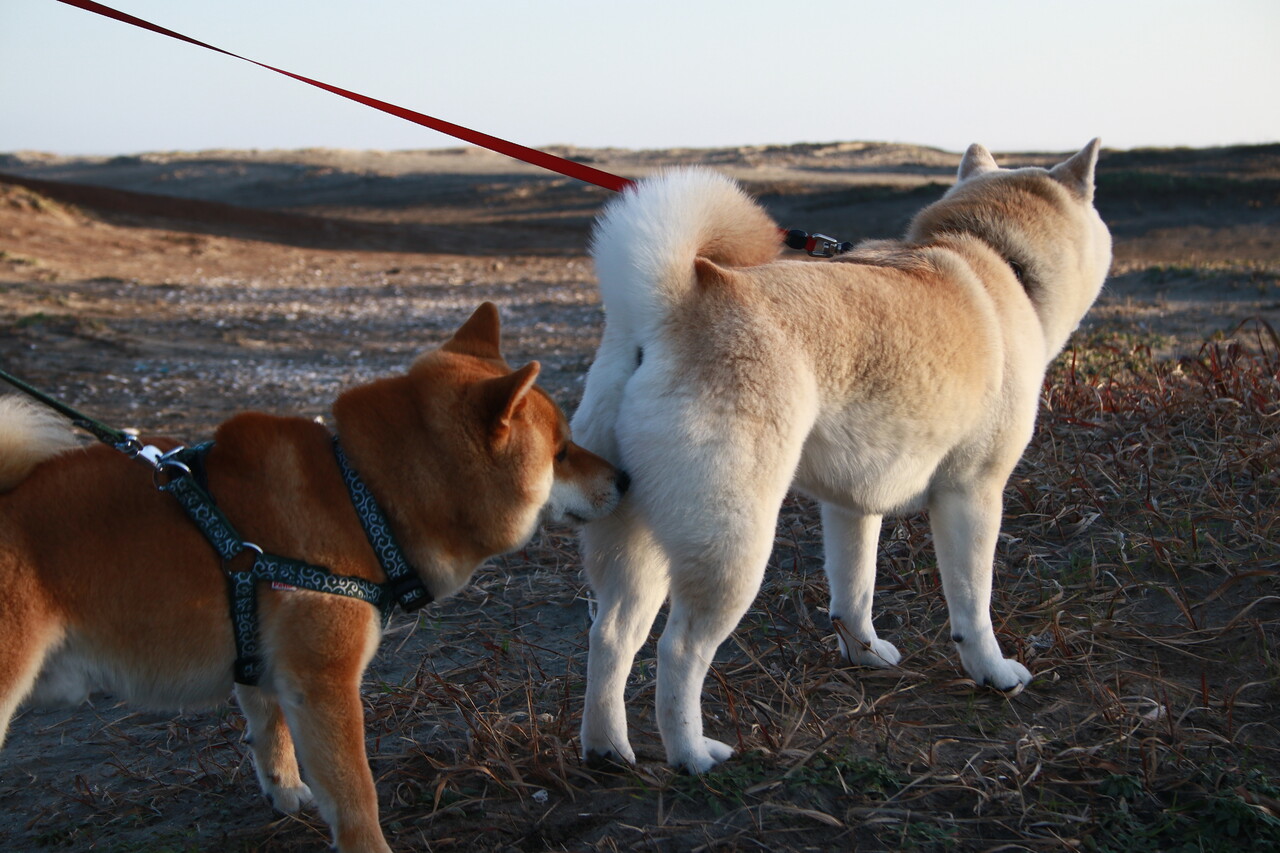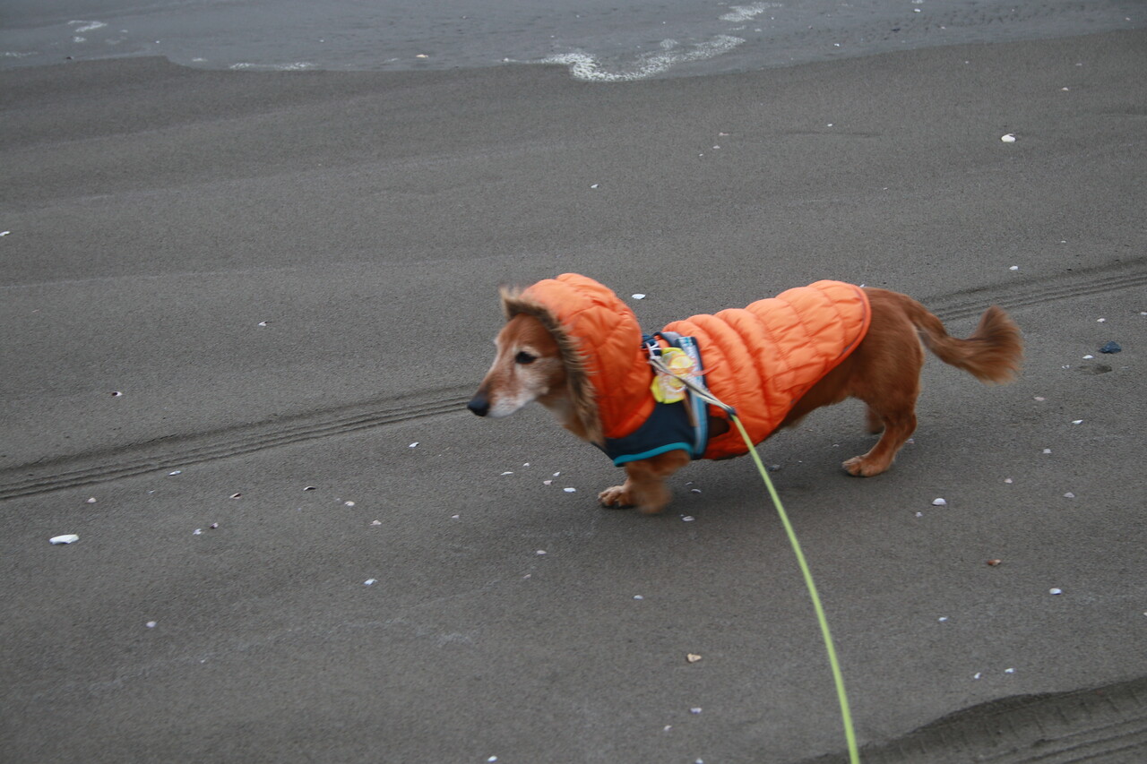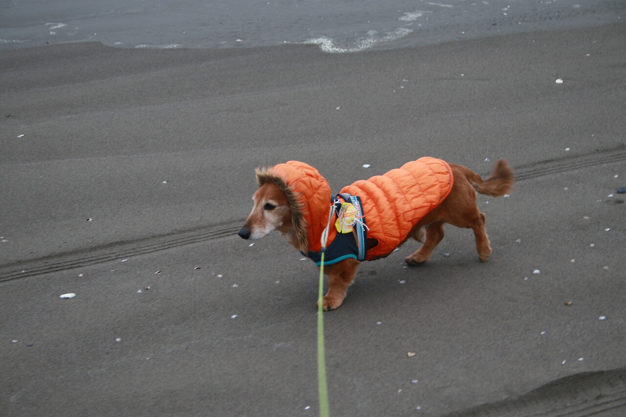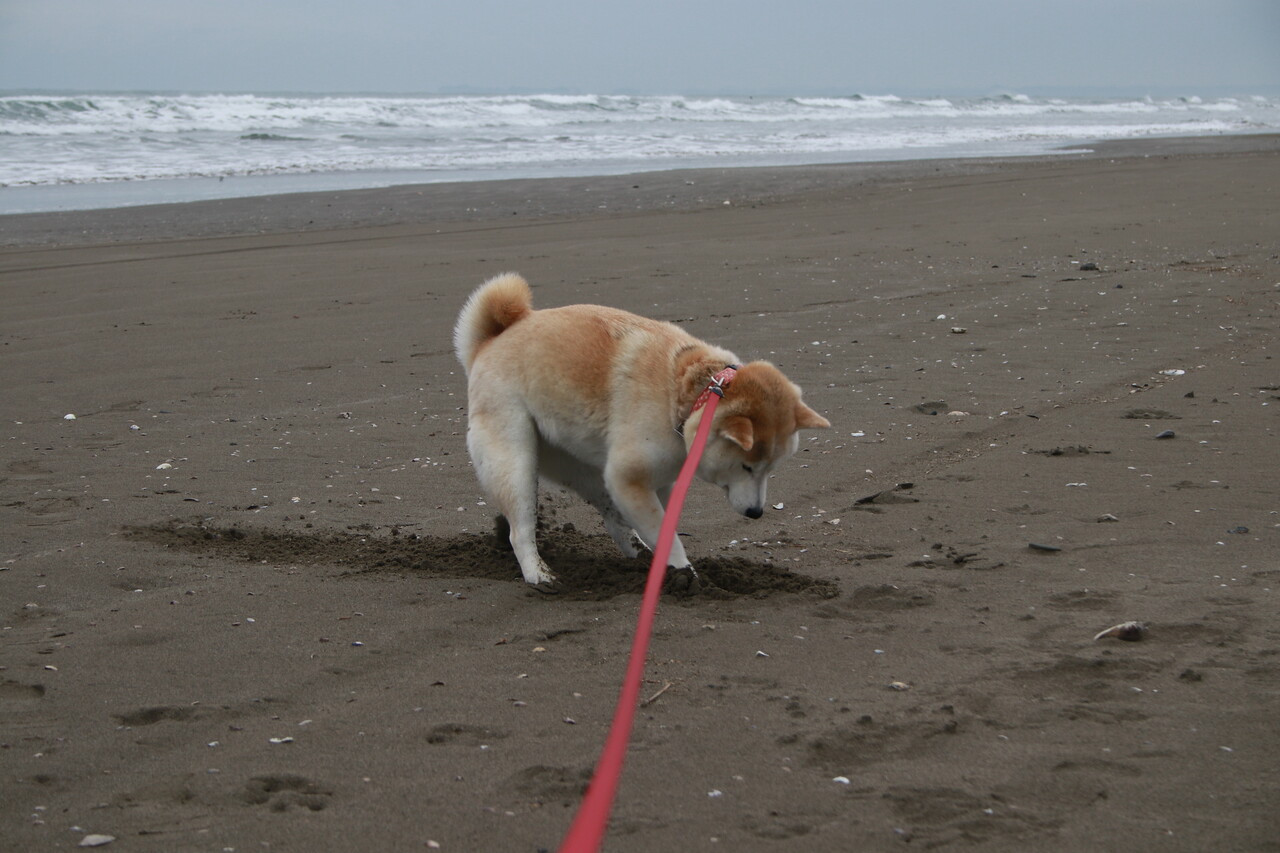 雨上がりの砂浜の香りは、格別。 仲良くチェックしています。