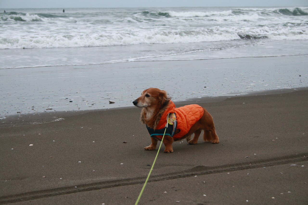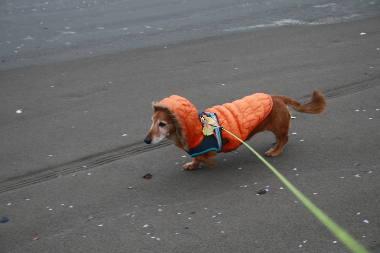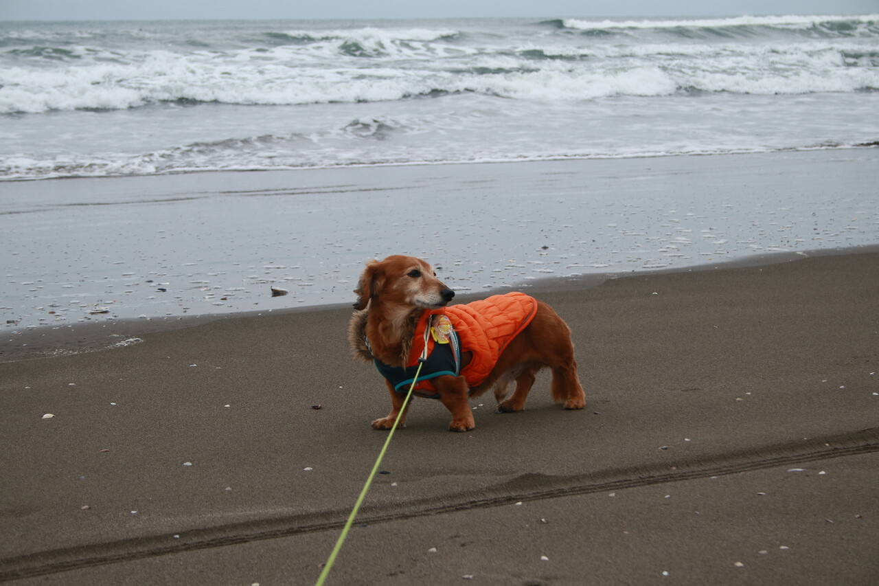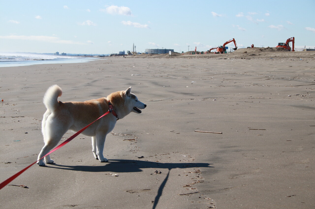 雨上がりの砂浜の香りは、格別。 仲良くチェックしています。