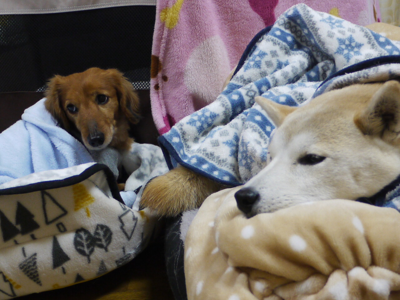 というより、最近は、お姉ちゃんのお布団にとぉちゃんが潜り込んでる感じかなぁ?