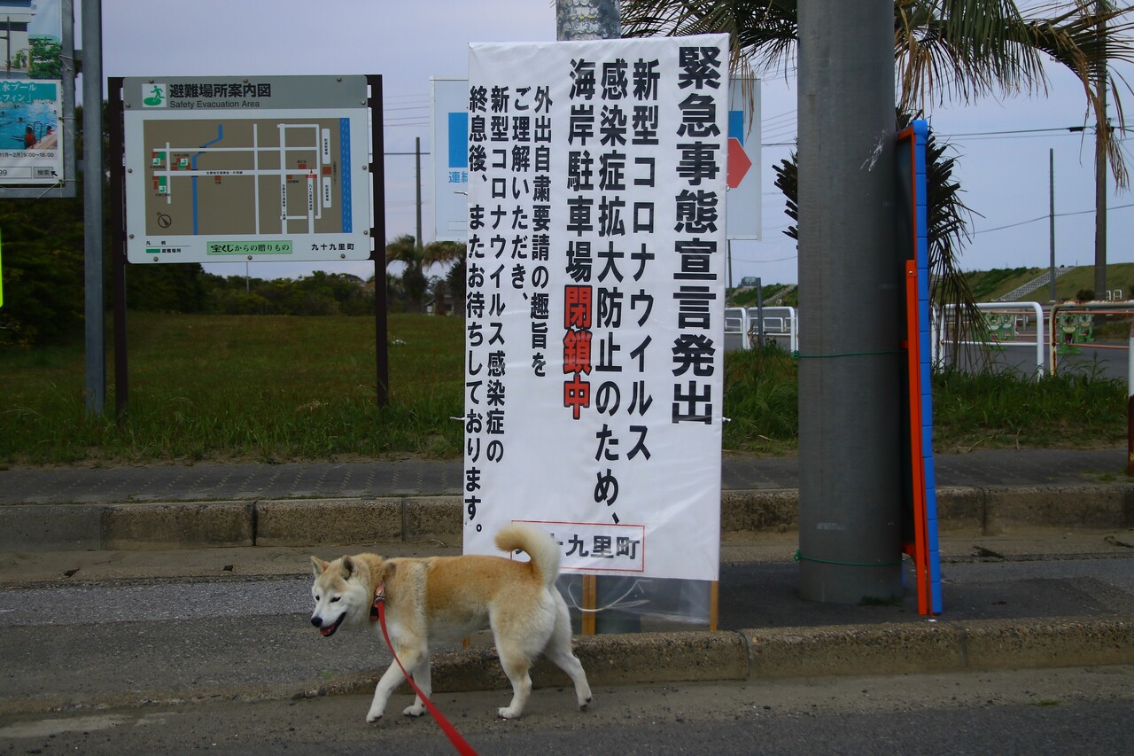 九十九里浜の「立ち入り禁止状況」を確認した我が家のワンに、応援よろしくお願いいたします。