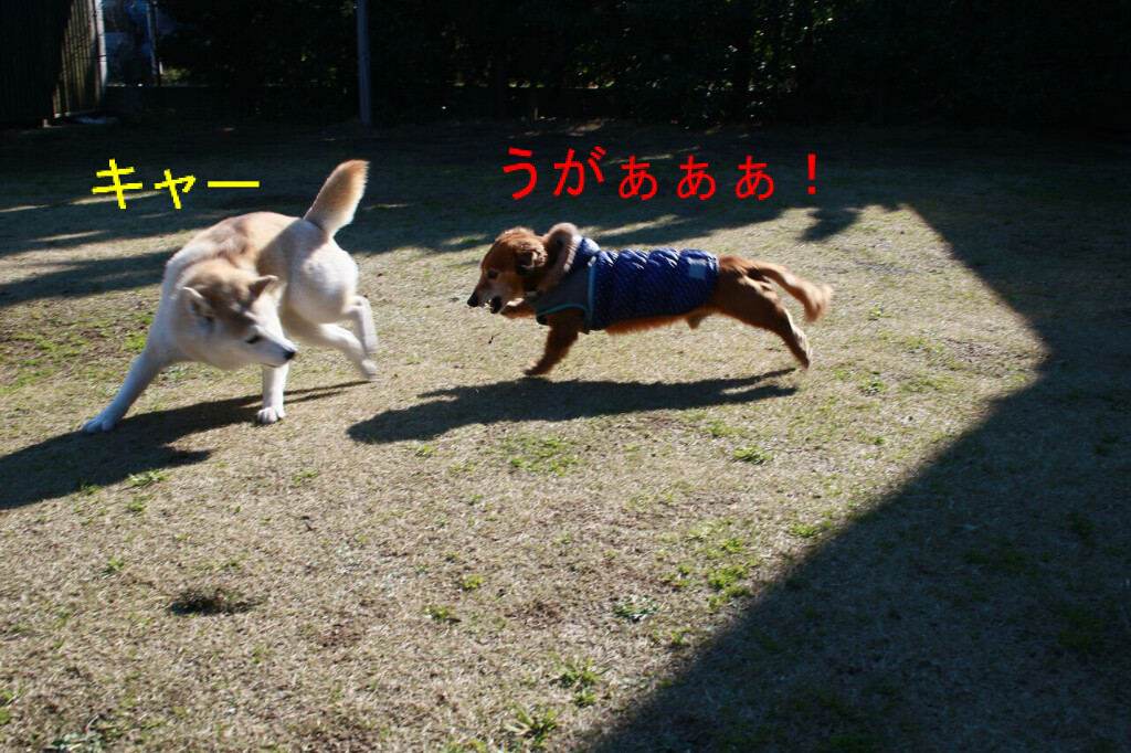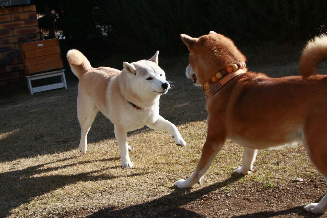 お正月も仲良し柴わんコンビは、元気いっぱい。