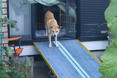 お庭とサークルをスロープで繋げました。 これからは、自由に出入りできます。