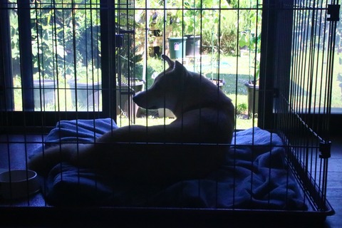 昼間は庭、夜は玄関でかぁちゃんと一緒に寝ていた鈴ちゃんですが、まだ予防接種も終えていない為、