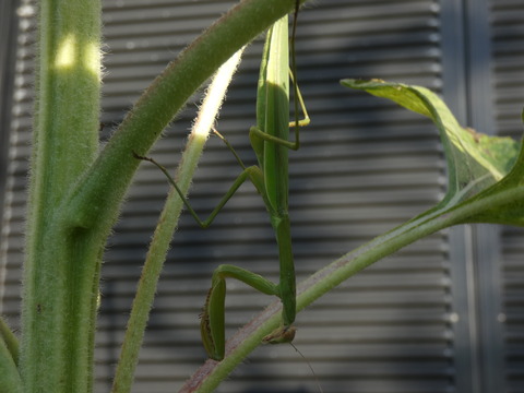 ヒマワリ番をしてくれたのは、オオカマキリさん。
