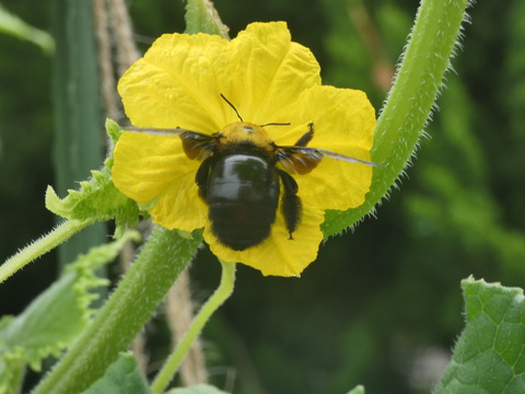 キュウリの花が大好きなのは熊蜂君。