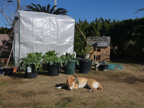 こんな日は、ビニールハウスのお野菜達も外に出して、日光浴 ♪