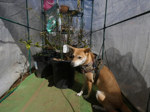 鈴ちゃんは、ビニールハウスの中をチェック中 。