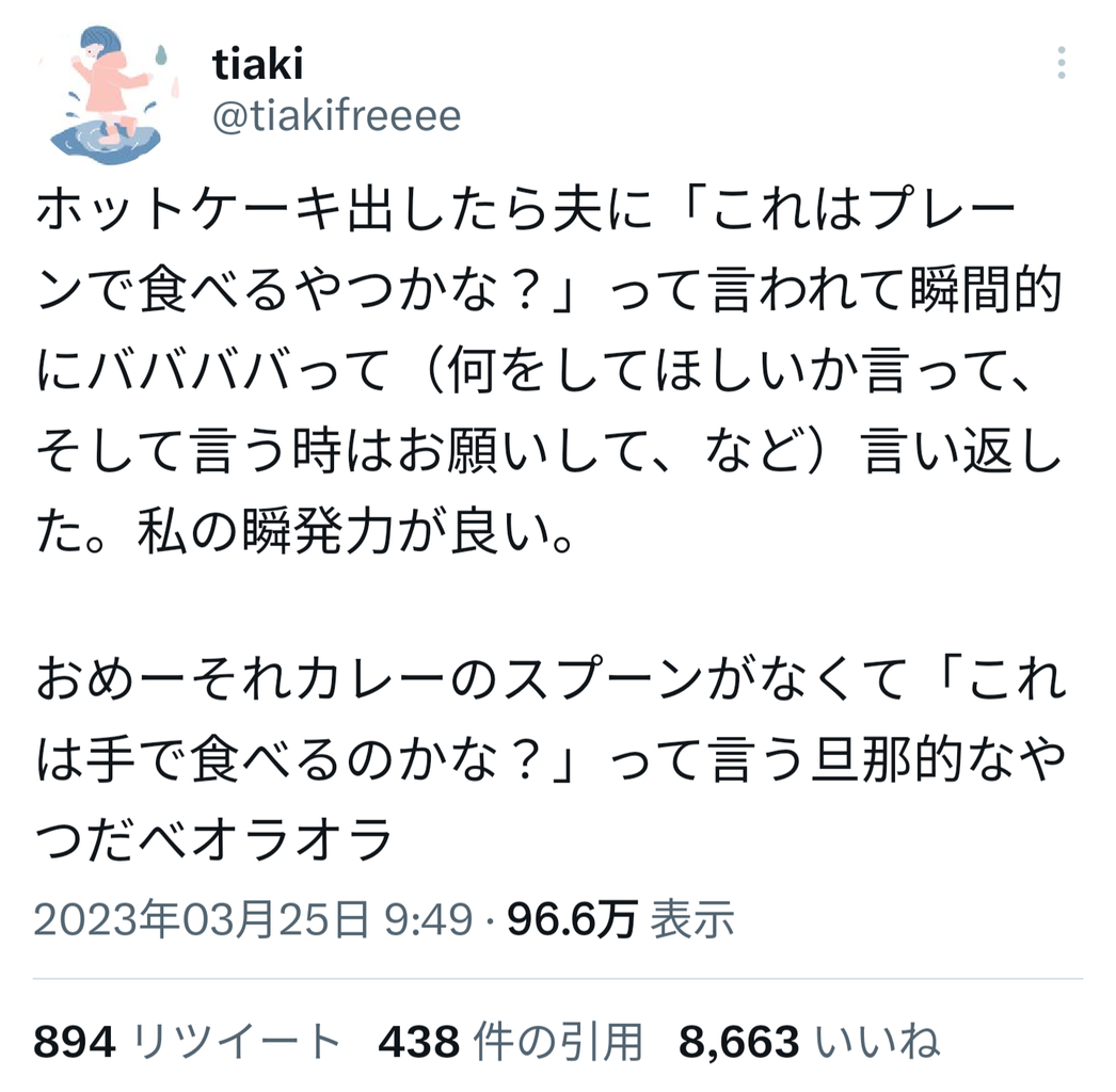 - ホットケーキだしたら夫に「これはプレーンで食べるやつかな?」と言われた [2023年3月30日]