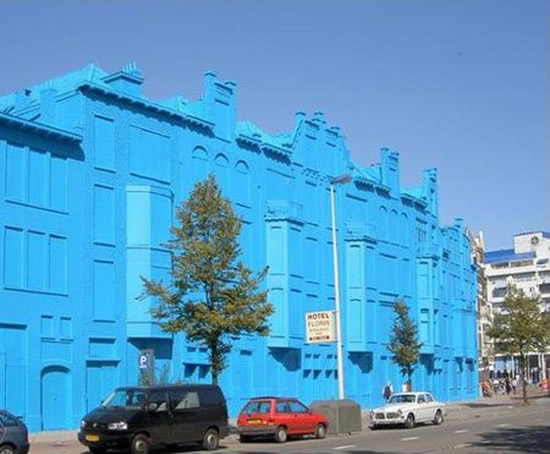 真っ青に染めてしまったロッテルダムの建物05壁も。