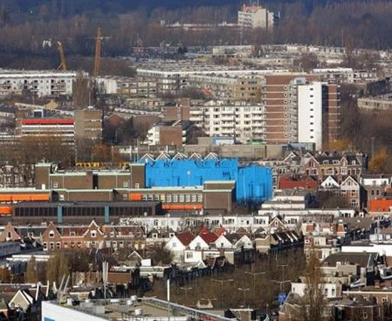 [画像:真っ青に染めてしまったロッテルダムの建物11]上空から見ると、本当に川みたいに。