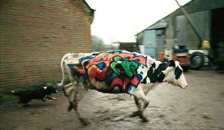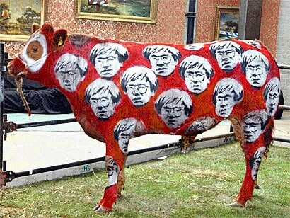 そのほかにアート目的のものがあります。これは2003年7月にポップアートで有名なアーティストのアンディ・ウォーホルの顔でいっぱいにされた牛です。