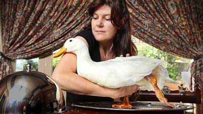 ピクシーはまだ生まれて5週間のヒナのときに捨てられていたのを、レベッカさんとデイビッドさんに引き取られ、娘のようにかわいがられてきました。アヒルのほうも彼らを両親と思い、どこにでも付いていくほどのなつきようだったと言います。