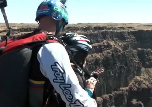橋の上からパラシュートで下に飛び降りたというのです。