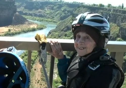 102-year-old base jumper Dorothy Custer celebrates birthday by leaping from a bridge in Idaho - YouTube