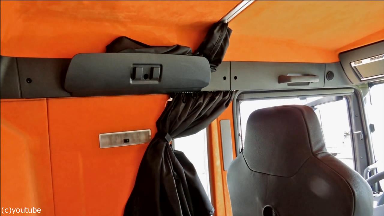 運転席後部は映らないので様子がわからないのですが、トラックと同じなら、ベンチシートやベッドがあることでしょう。